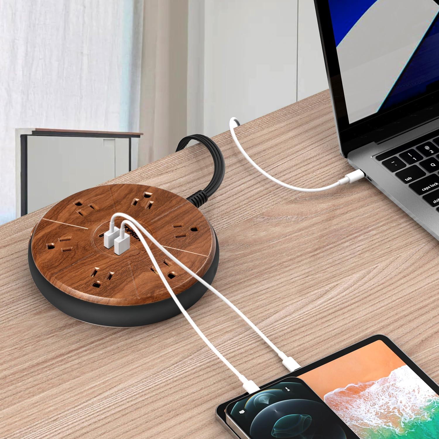 • ๐Ÿš€ [Stylish & Unique Design] - If you need a surge protector that sits on your desk and want something stylish, this is the right product! The wood finish is much nicer than your average power strip, will blend better with your wooden floors, desks and etc, and will serve the very purpose it was designed for.