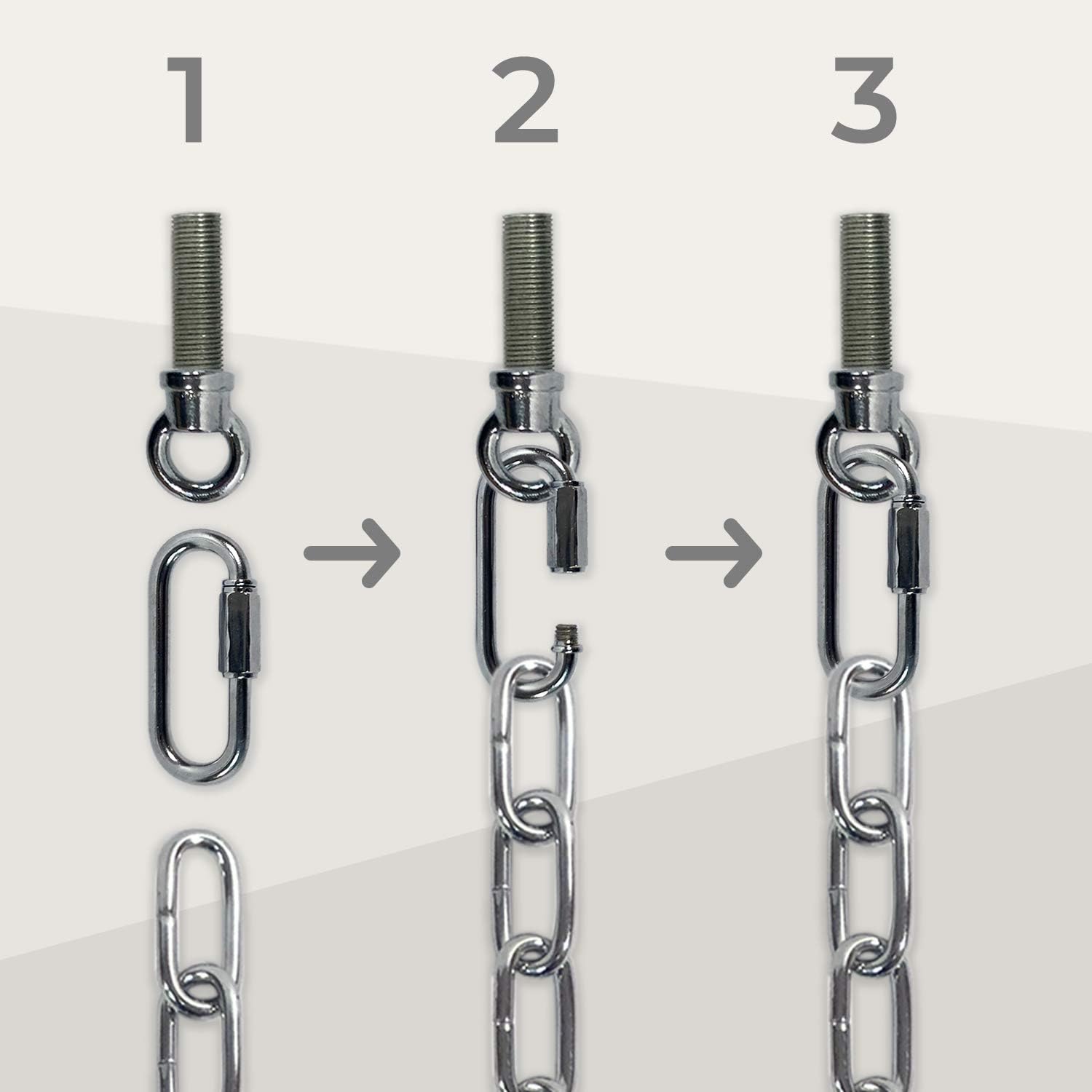 The Royal Designs Fixture Chain features lock buckles, screw-in hooks and threaded pipes which give you convenience and flexibility of using the chains in a multitude of ways! The lock buckles allow you to interlock chains together or connect to mounting hardware (like the included mounting hook with threaded pipe) Create a stylish garden fence, or a DIY bird feeder, or even a unique artistic hanging display. The possibilities are endless! The Heavy Duty Lighting Fixture Chain from Royal Designs is the ultimate chain for hanging your chandeliers, pendant lights, and even flower pots! Available in five beautiful finishes, our chains will match any space and compliment any decor! Our chains are sturdier than most, capable of holding up to 60 pounds, making it perfect for protecting your priceless chandelier, one-of-a-kind ceiling light, or even delicate plants. We pride ourselves on providing products that are not just functional and stylish, but also made to last. Our chains are coated in a protective lacquer that prevents tarnishing, meaning they’re great for both indoor and outdoor use. The lock buckles are user-friendly while also being solid and rugged. You can rest easy knowing that whatever hangs from our chain will only come down when you want it to! Choose from a set 1, 2 or more!