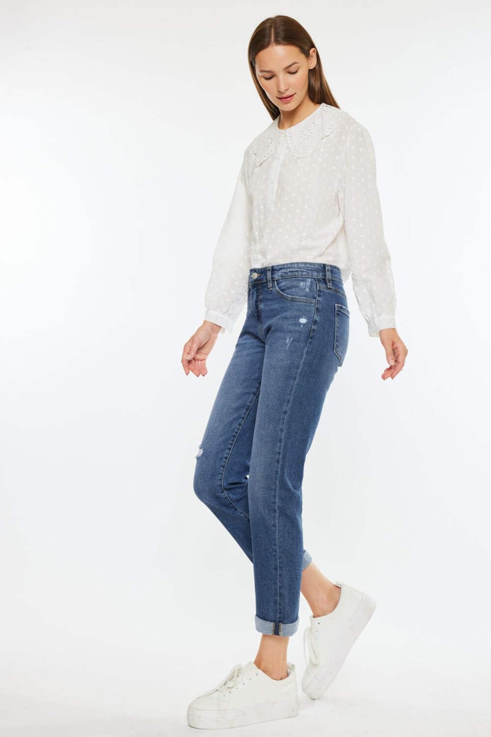 Introducing our Pamela Mid Rise Slim Straight Jeans in a beautiful Dark Wash color. This chic mid rise jean is made from a stretch denim fabric that'll accentuate your curves but give you an all-day comfort. Features a double fold hem, a five-pocket design, single-button closure, and a zip-fly. 9.5" Rise/ 27" Inseam (1" double fold)99% Cotton, 1% SpandexModel in size 25Medium Wash Style # : KC20055DStretchiness Level >> Comfort Stretch SIZEWAISTHIP1/2428.5"35"3/2529.5"36"5/2630.5"37"7/2731.5"38"9/2833"39.5"11/2934.5"41"13/3036"42.5"15/3137.5"44"