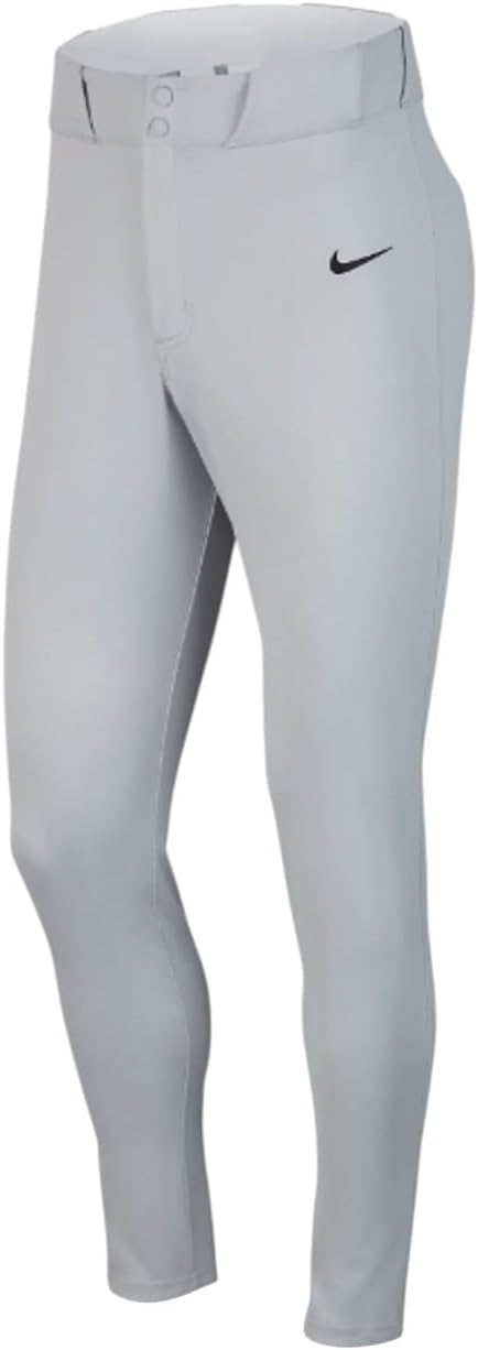 Nike Vapor Select Pants, designed for intense competition, feature breathable knit fabric and a sleek, slim fit. Internal waist grip ensures uniform stability during rigorous play. Available in Wolf Grey/Black, style FZ1369-012. Offers a slim fit, tailored for a polished look. Size guide available for precise fit.