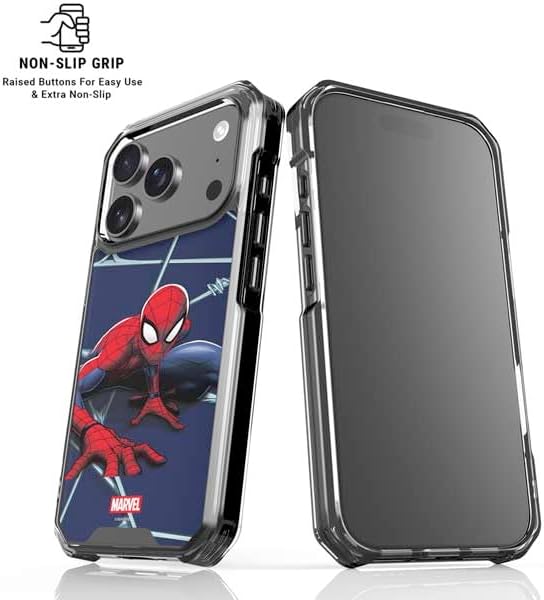 The Marvel Spiderman Crawling Spiderman Clear Case compatible with iPhone 17 Pro Max offers a protective solution crafted from transparent materials. This Marvel Spiderman Crawling Spiderman design shields your smartphone from the rigors of daily life, including dust, scratches, and wear and tear. With a 4 Corner Air-Pocket Shock Bumper and a raised front bezel, this Spiderman Clear Case compatible with iPhone 17 Pro Max not only safeguards your device but also does so in a stylish and minimalist fashion, providing extra protection for your phone's screen. To top it off, the Case is adorned with a 3M vinyl decal skin compatible with iPhone 17 Pro Max on the back, ensuring that this Spiderman Clear Case compatible with iPhone 17 Pro Max not only offers protection but also presents a visually appealing look for your smartphone.