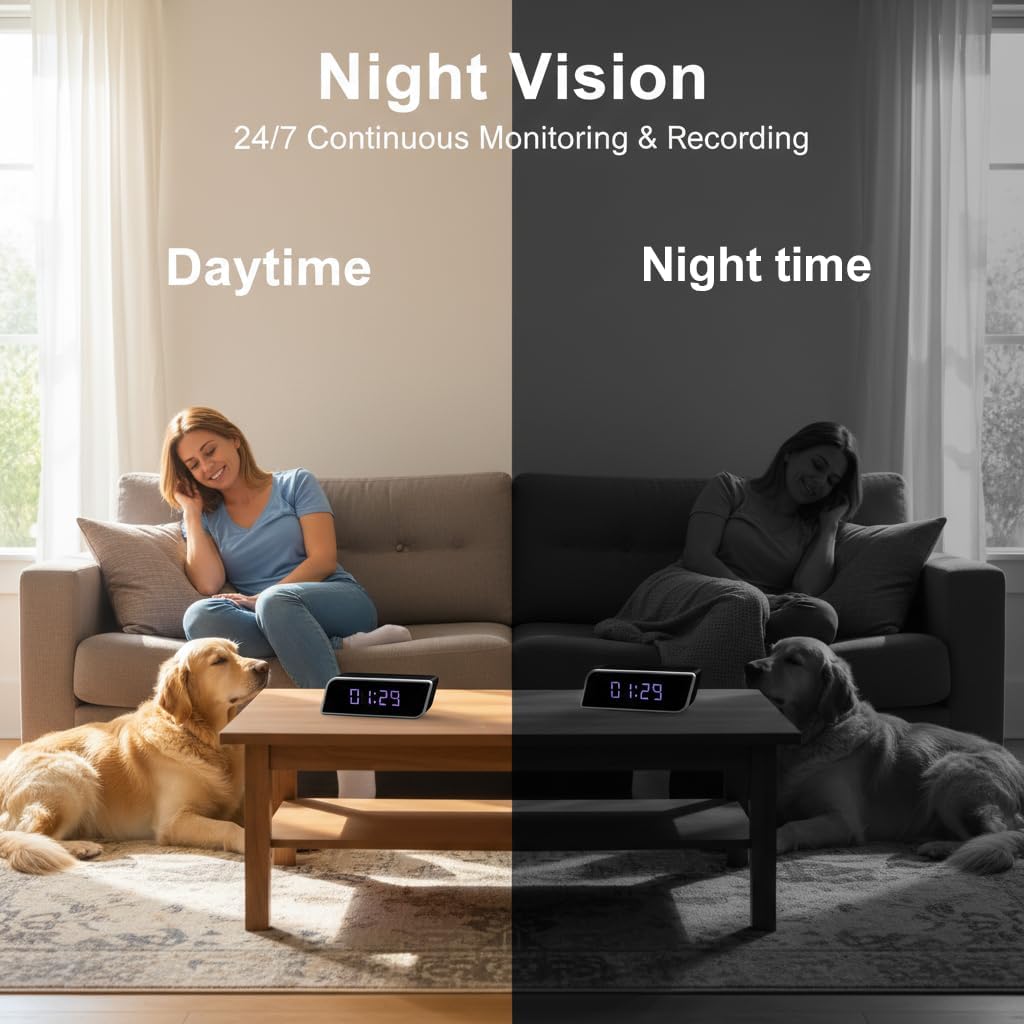 Smart Clock Camera Multi-Functional 4K UHD Cameras with Night Vision, Support Local Storage, App Remote View, 2600mAh Battery, WiFi&AP Model, No Audio