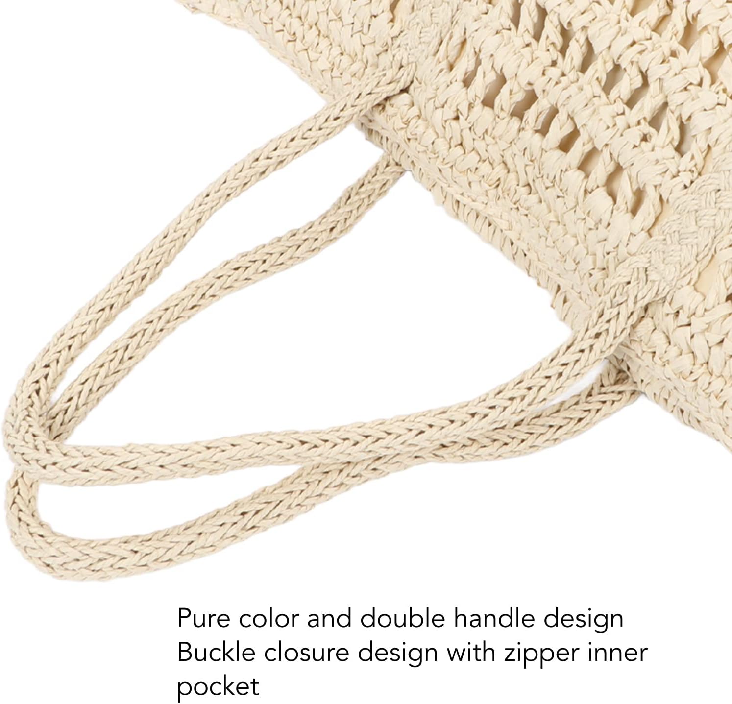 1. STYLISH BAG: Pure color design with handle makes the straw bag more delicate and stylish, and this straw handbag is not only a handbag, but also a decorative work.2. APPLICABLE SCENARIOS: Straw bag makes you more fashion in this summer, is a unforgettable women. Perfect for any scenes such as beach, party, shopping and dating.3. HIGH CAPACITY: Woven straw bag features ample space to store everyday items such as A4 documents, umbrellas, wallets, cellphones, and cosmetics.4. DOUBLE HANDLE DESIGN: Featuring a practical buckle closure and a zippered inner pocket, this woven straw bag is designed with simplicity and functionality in mind.5. ELEGANT LOOK: The dense weave and sewn lining of this woven straw bag give it a unique and elegant appearance, making it a perfect accessory for any outfit.Specification:Item Type: Straw BagMaterial: Paper RopeTop Opening Length: Approx. 48cm / 18.9inHeight: Approx. 40cm / 15.7inPackage List:1 x Woven Straw Bag