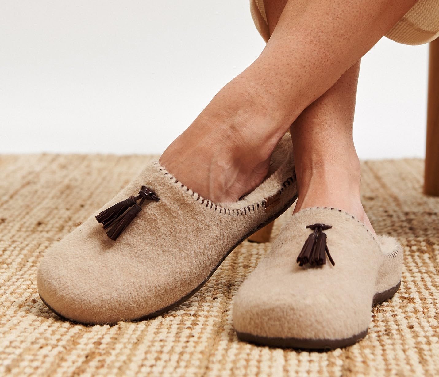 Strive Lille Women's Comfort Slipper. A classic silhouette with subtle feminine detailing, Lille offers chic styling with all the snuggly comfort of a fully fauxfur lining, finished off with a twin tassel detail.