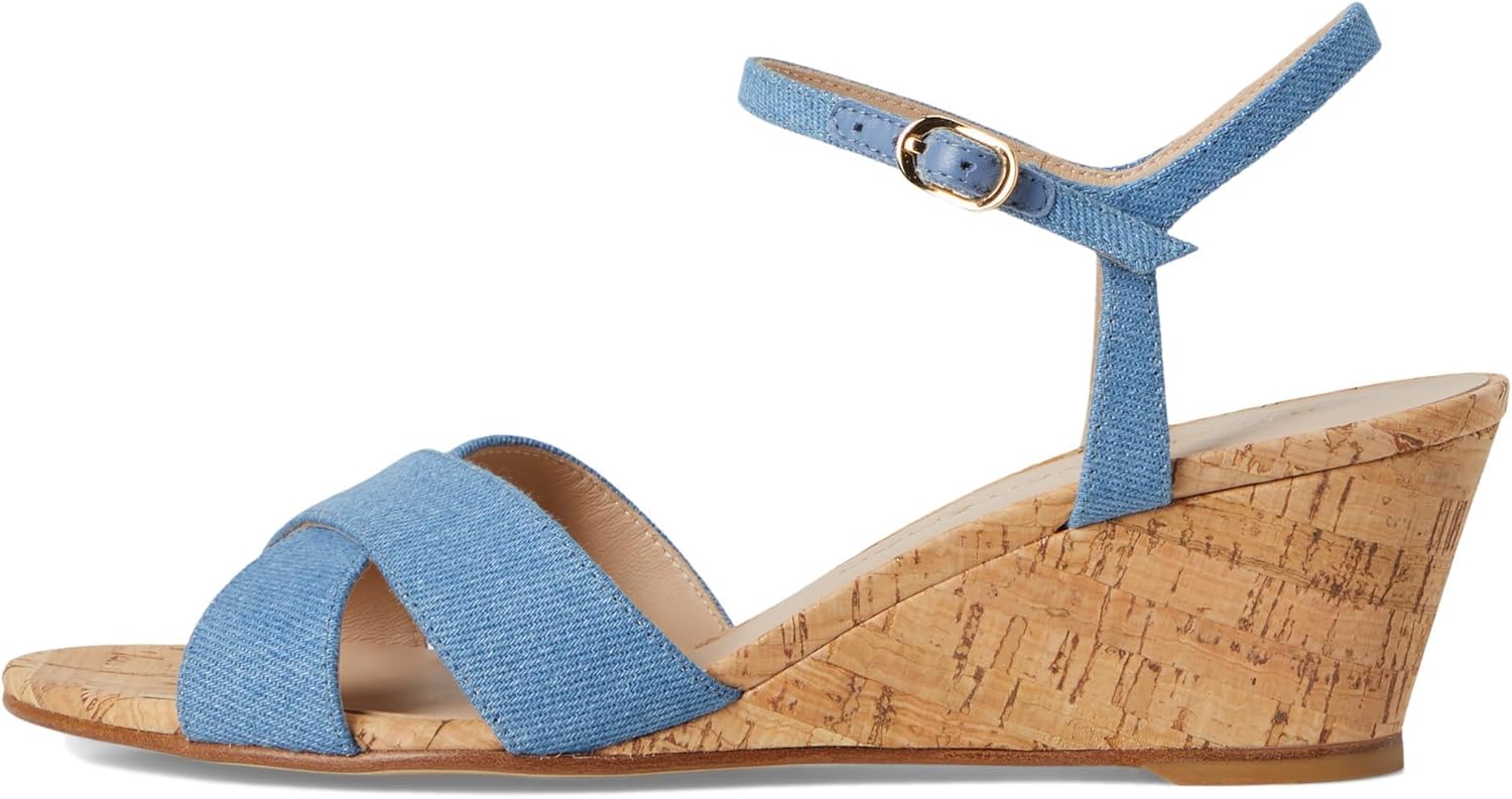 Make a statement choosing the Stuart Weitzman Dayna Demi Wedge heels. Crafted with stylish denim upper and luxe mestizo leather lining, these sandals are both fashionable and versatile. The leather insole offers premium comfort, while the open toe design adds a playful touch. Complete with wedge heels, these sandals will effortlessly elevate your look. Ankle strap with buckle closure. Leather outsole. Made in Spain.