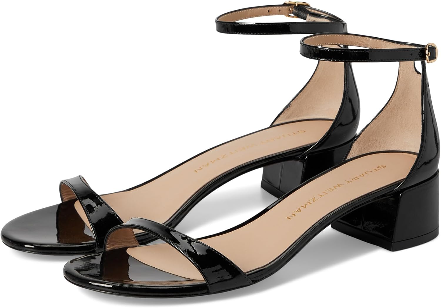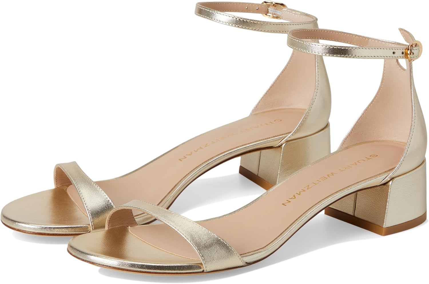 Make a statement wearing the Stuart Weitzman Block 35 heels. Featuring sleek leather strap upper and premium mestizo leather, these heels are as stylish as they are comfortable. The leather insole and open toe design ensure all-day wearability, while the block heels add a touch of elegance to any ensemble. Buckle-fastening ankle strap. Leather outsole. Made in Spain.