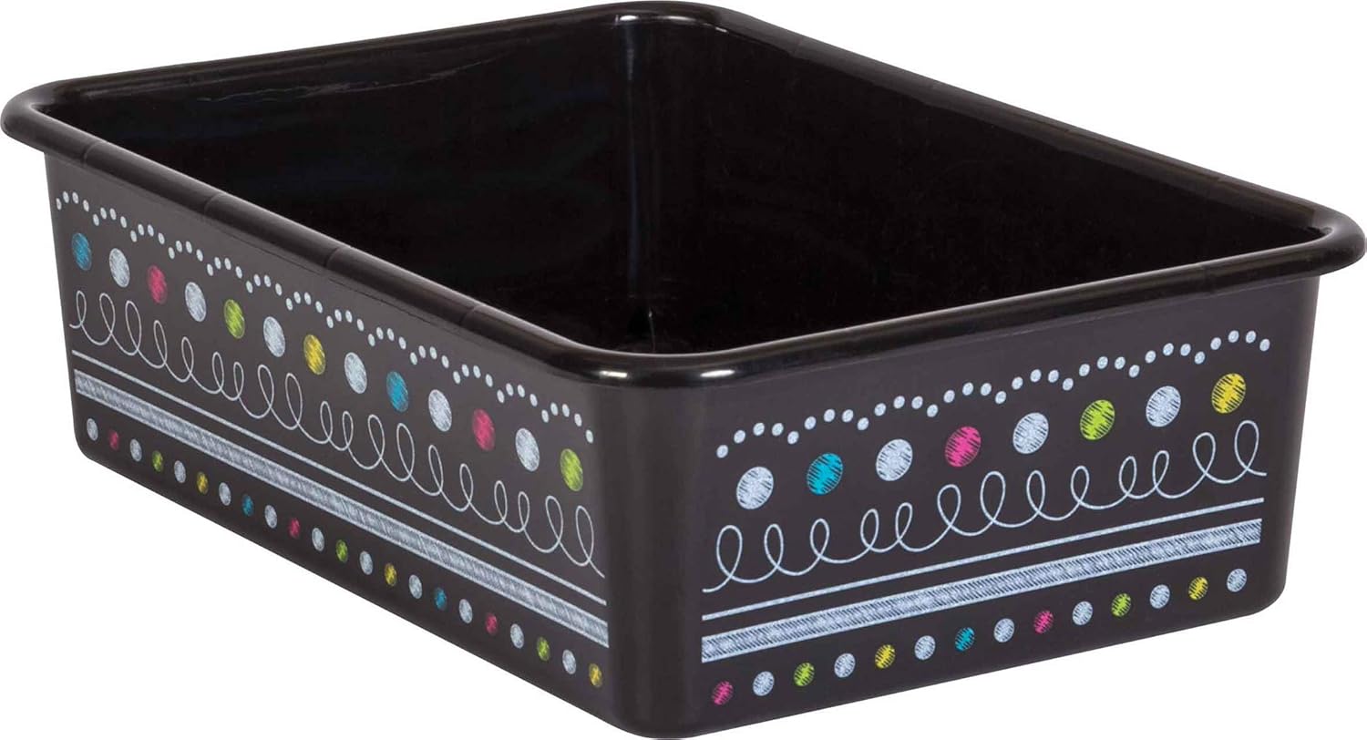 Create a beautifully organized classroom with these large storage bins. Keep books, notepads, toys, games, and supplies in these decorative organizers that feature a sturdy plastic design. Multiple bins can be stacked for easy storage. Each bin measures 11-1/2" L x 16-1/4" W x 5" H.