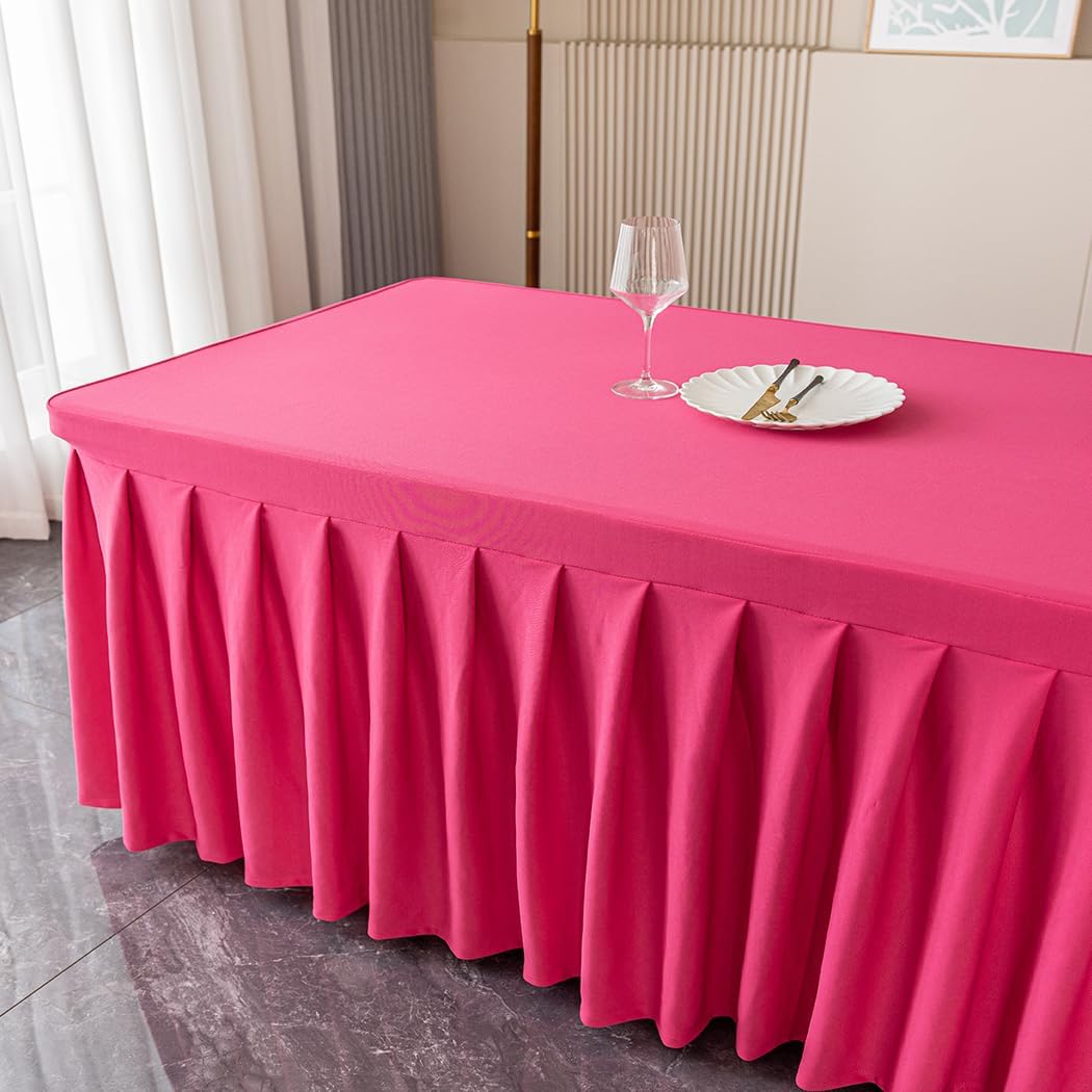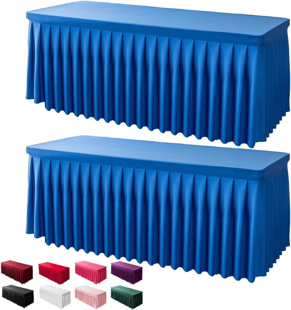 This Tina table skirt made of thick and premium quality fabric, durable and reusable 90% Polyester, 10% Spandex。6ft (72 x 30 x 29in), suitable for the table of 72(L) x 30(W) x 29(H)in. one Piece Design. This Fitted table cover with skirt fit 6 ft standard foldable rectangle tables. Cover all 4 sides and top of the table. Instant setup. Use a measuring tape to measure your table's length, width, and height for a rectangular table before ordering. Due to its unique fitted design, our 6 FT table cloth is suitable for 72 L x 30 W x30 H Inches' rectangular table. Perfect for elegant wedding receptions, formal banquet affairs, holiday dinner, baby shower, birthday, party, trade show, buffet table, special catering services, Thanksgiving & Christmas dinner and more. Designed to be universal, perfect for any occasion whether it be a formal or casual event. In order to meet your needs for different scene decoration, we offer multiple colors for you to choose from. Match the subject of any occasion.