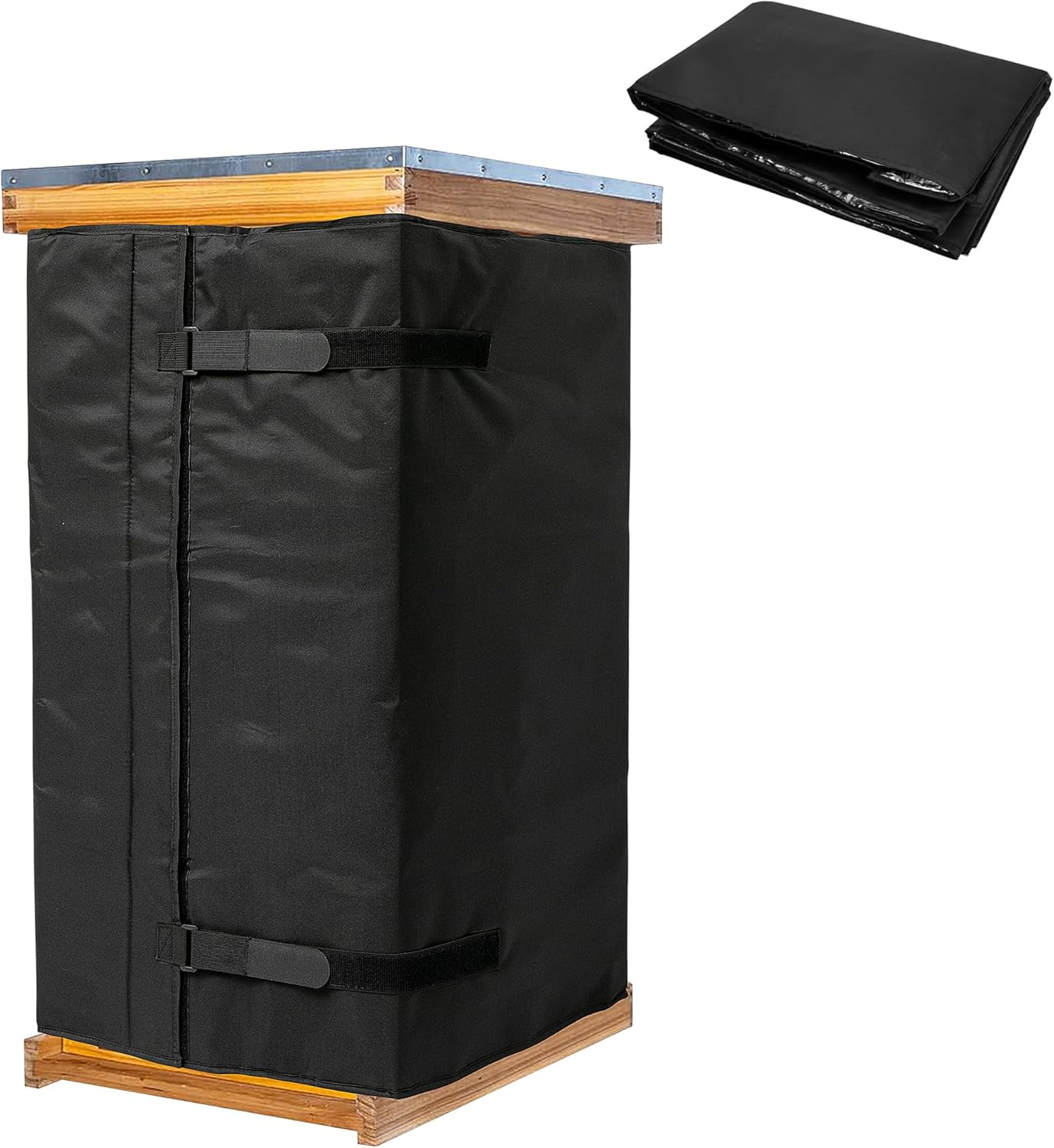8 and 10 Frame Winter Bee Hive Wrap, 2 Deep Boxes & 2 Medium Box Adjustable Beehive Winter Protection Cover, 600D Oxford Cozy Windproof Warm Bee Hive Insulation Wrap for Most Bee Hive (85" x 34") Package Include: 1 Pc x 2 Deep Boxes & 2 Medium Box Winter Bee Hive Wrap Specification: Color: blackMaterial: 600D Oxford cloth, aluminum foil, pearl woolSize: 85 x 34 inch Features: (1)The warm bee hive insulation wrap is mainly used to keep the beehives warm during the winter, against water, wind, cold, so that the bees can withstand the harsh winter weather. (2)Our beehive insulated cover adopts an adjustable touch fastener design with 2 touch fastener straps, which can be flexibly adjusted according to the size of your beehive for better adaptation. (3)Easy to use, no other tools are required, just wrap the beehive warm cover around the bee hive and secure it with touch fasteners.
