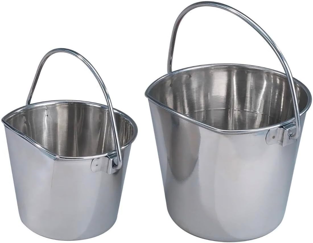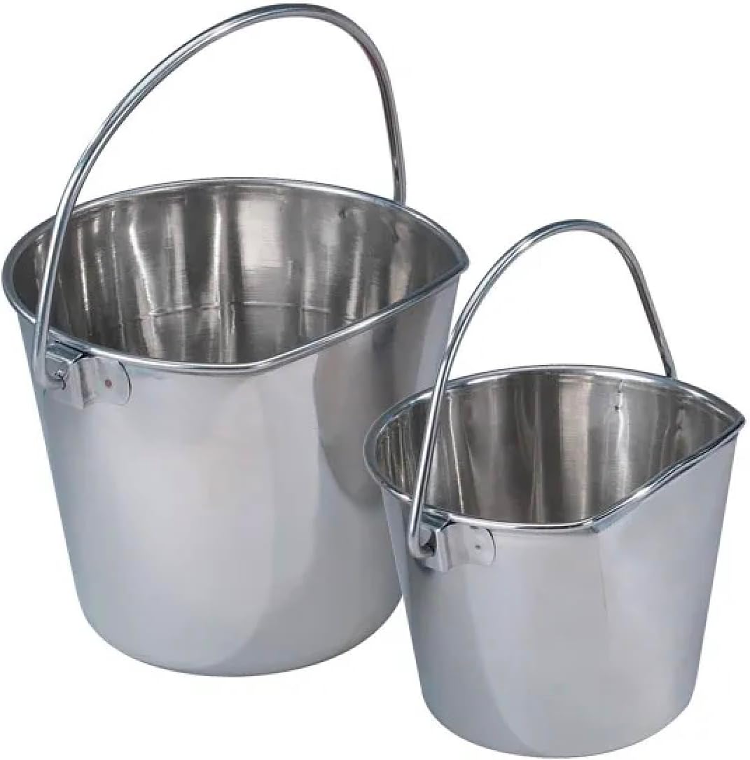 10 Flat Sided Pail Bulk Packs - Great for Kennels, Farms and home use. Our unique Flat Sided Stainless Steel Pails are designed for hanging without tipping over and spilling contents. Durable, heavy duty stainless steel will not rust, chip or crack and is easy to clean New, improved contour handles feature a snag-free design for added safety Available in 1, 2, 4, 6, and 9 Quart sizes Material: 14/4 Stainless-Steel (14% Chrome/4% Nickel) Size: 1 qt pail = 5" 2 qt pail = 6" 4 qt pail = 8" 6 qt pail = 8 3/4" 9 qt pail = 9 3/4"