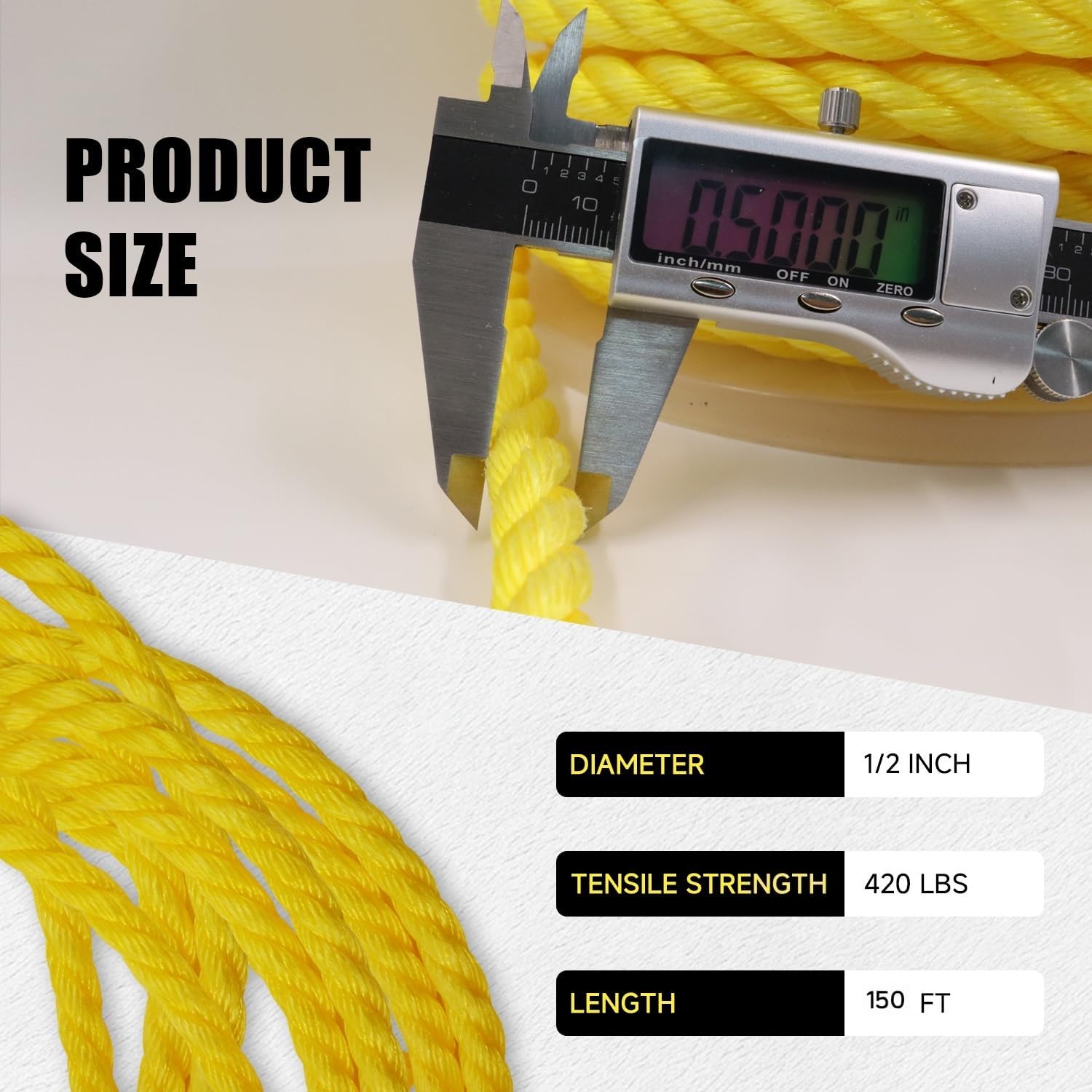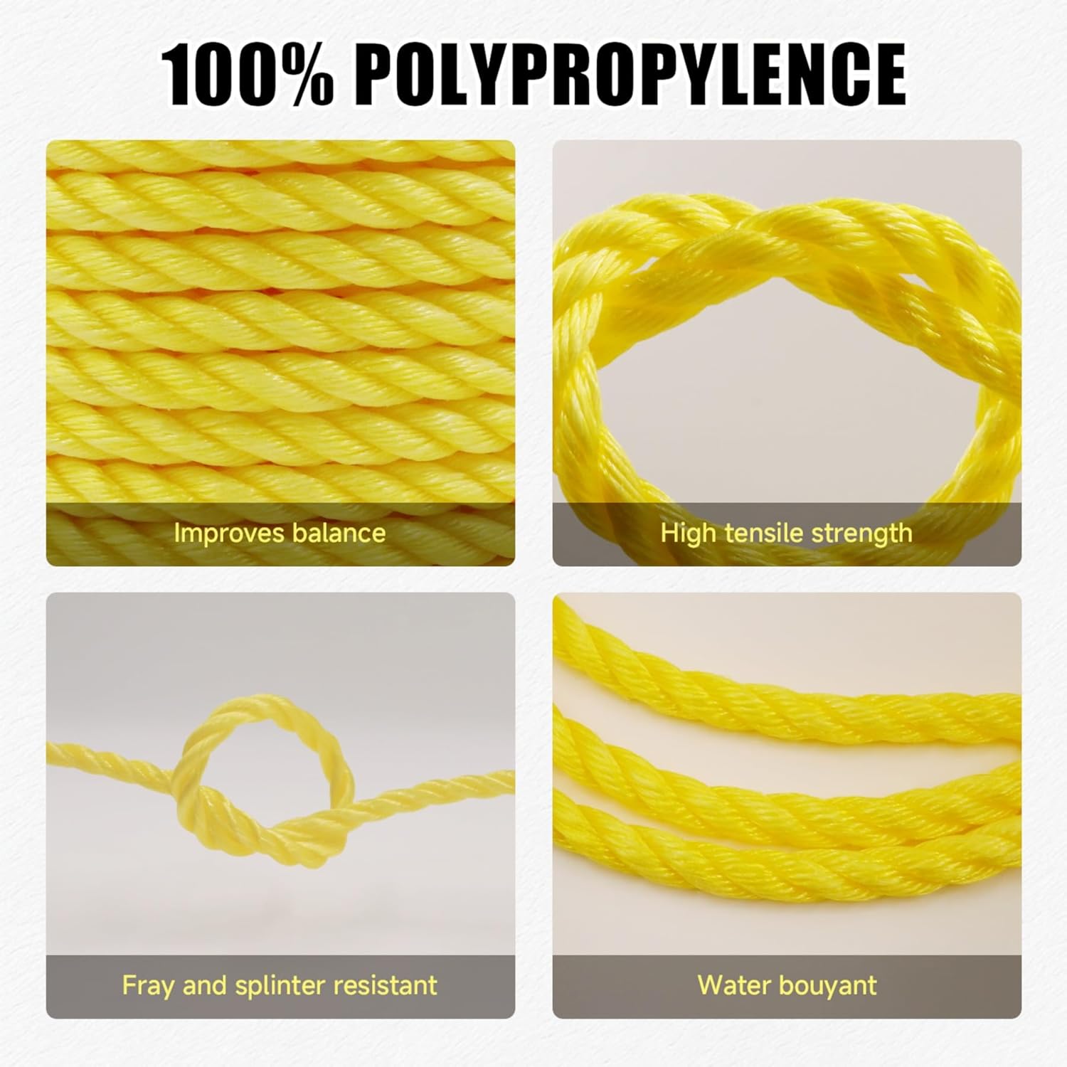 This 1/2 inch Yellow Twisted Rope is designed for strength, durability, and everyday versatility. The traditional 3-strand twisted construction provides reliable load support while maintaining flexibility for easy knotting and handling. The bright yellow color improves visibility, making it ideal for construction sites, marine environments, and outdoor projects where safety matters. Whether you're securing cargo, setting up camp, tying down equipment, or working on landscaping projects, this heavy-duty rope is built to perform. Strong, dependable, and easy to use — a must-have utility rope for professionals and homeowners alike
