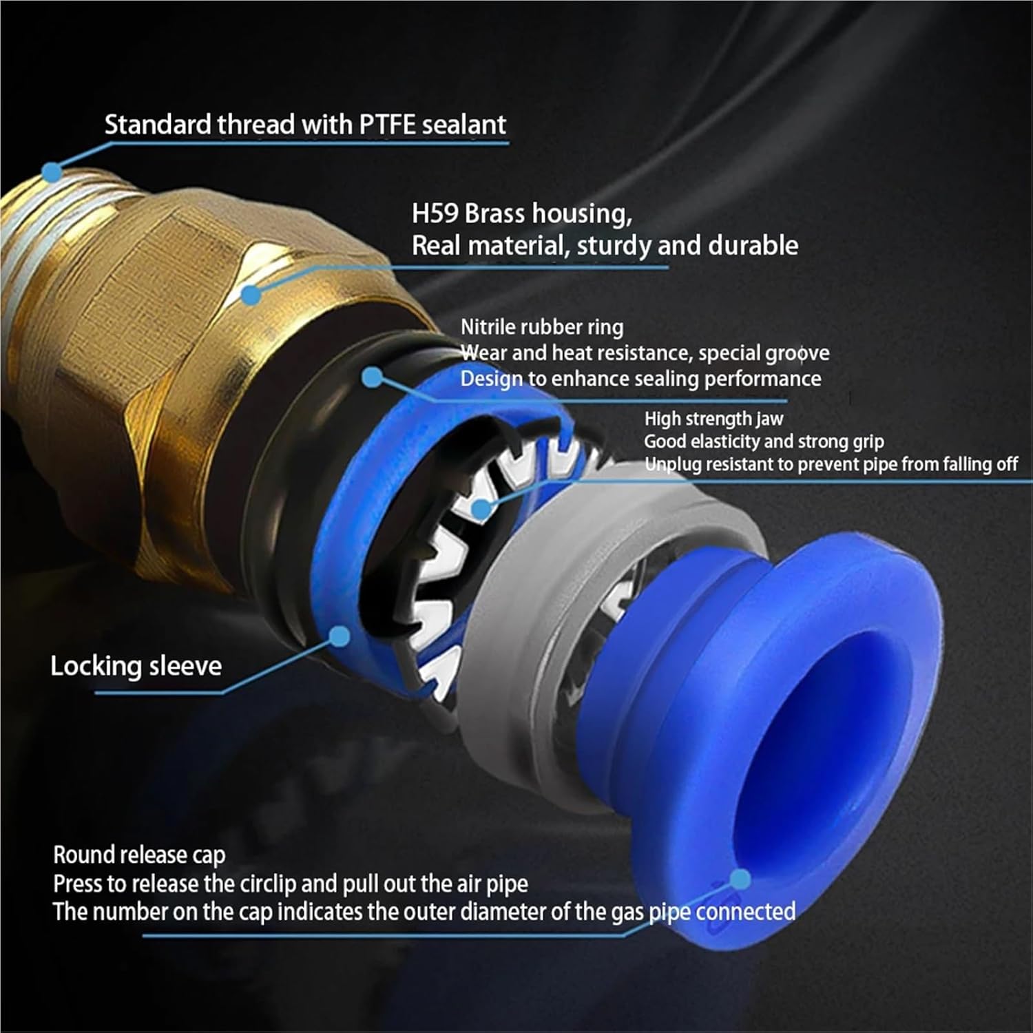 Quick-Connect-to-Barbed Fittings1pcs Pneumatic Quick Connector Male Thread BSPT M5 1/8 1/4 3/8 1/2 PU Hose Air Pipe 4 6 8 10 12 14 16mm PC8-02 Brass Straight