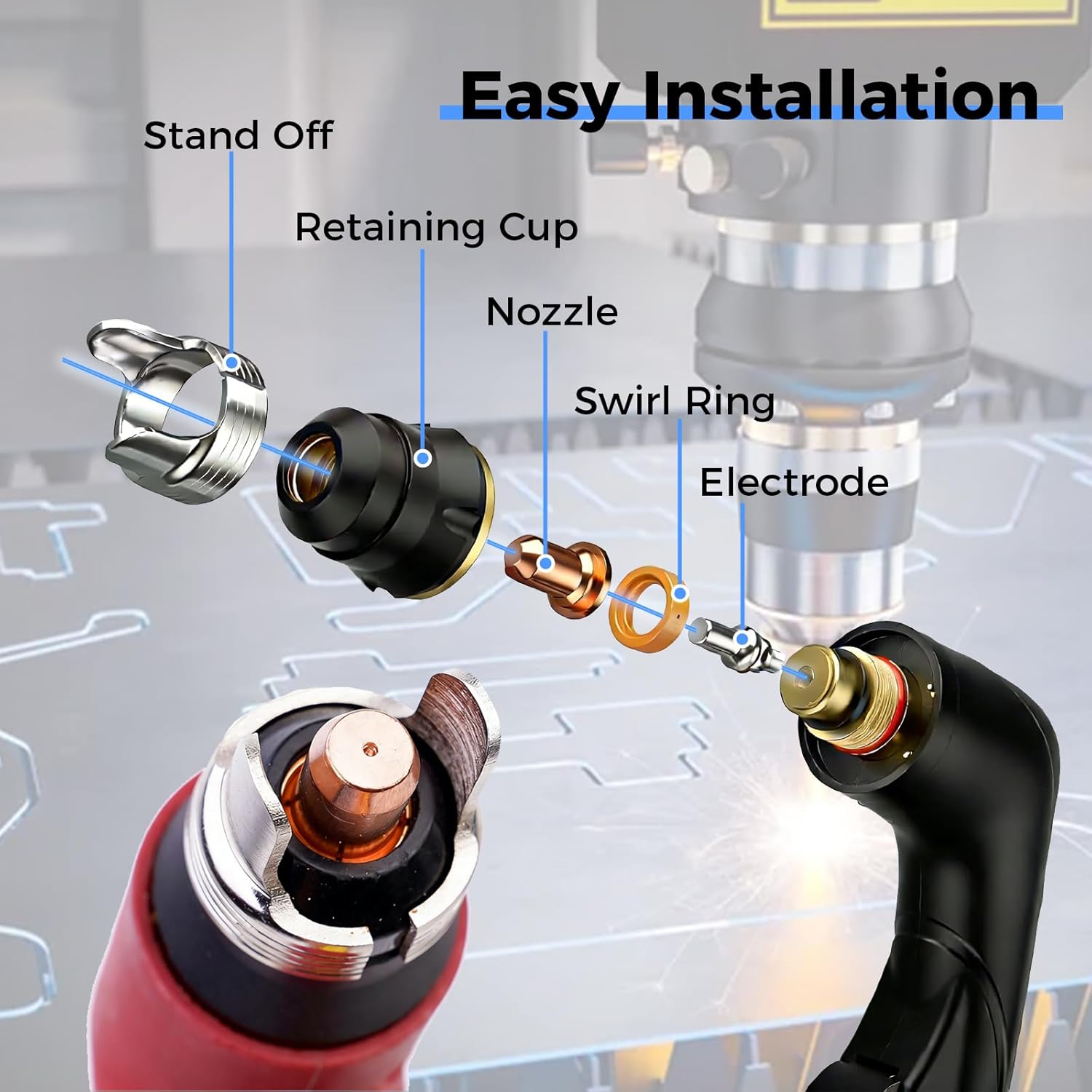 Spec:Item Type: IPT40 Tip Electrode KitMaterial: Brass, Stainless SteelReplacement for YESWELDER CUT 55DS Pro, for CUT 65DS Plasma CutterHow to Use:Open the packaging and take out the product to start using it.Package List:1 x Protective Cover1 x Protective Cover Accessory2 x Bracket10 x Electrode10 x Nozzle