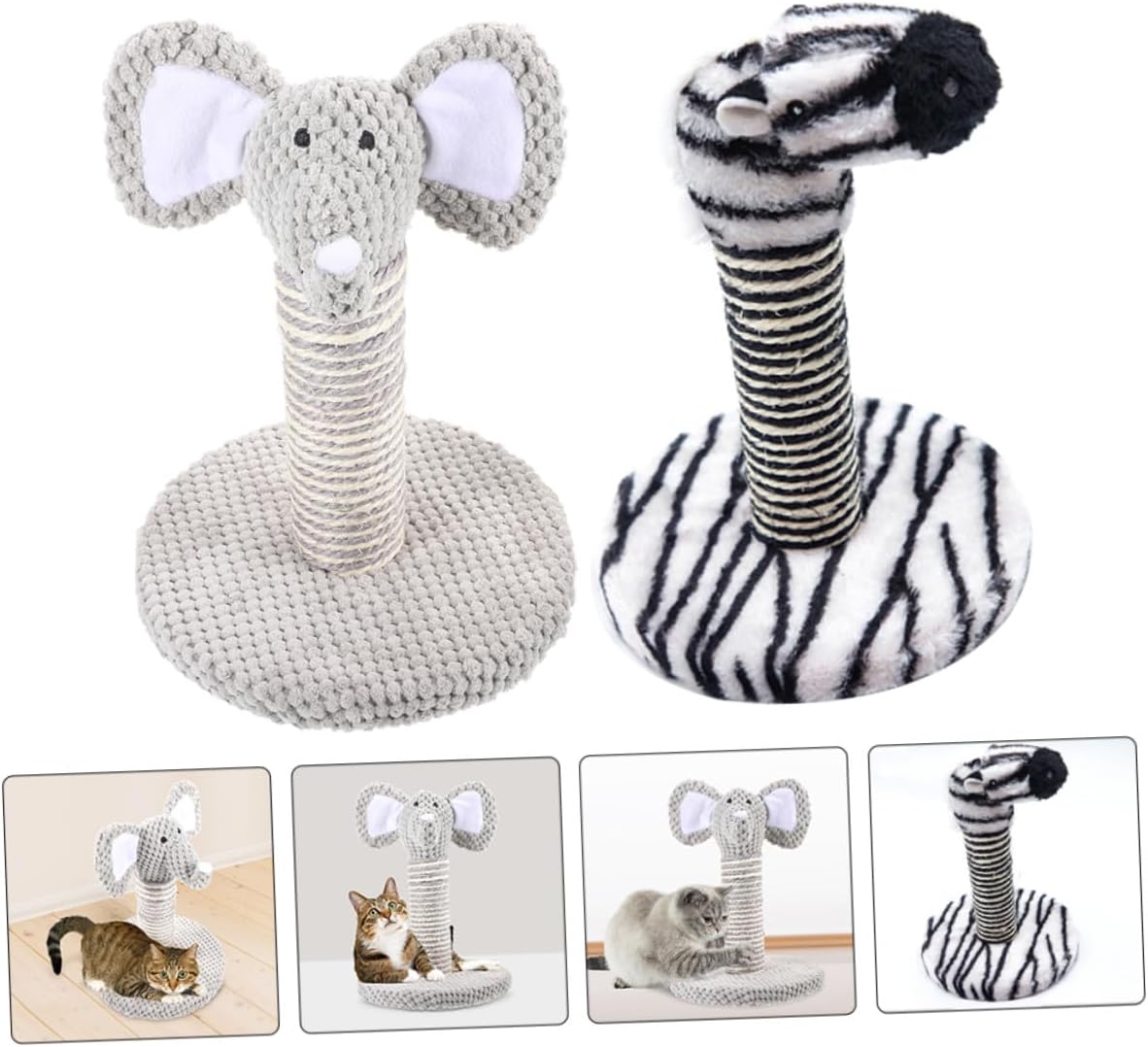 Package List 1 x cat scratching post(elephant style) 1 x cat scratching post(zebra style) Features -Size:27.00X19.50X19.50cm/10.61X7.66X7.66in -Product Info:Cat climbing rack -Material:Lint, chipboard, sisal rope, paper -Color:Light Grey - A place for your cats and keep them from scratching your furniture. This scratching post looks comfortable cat scratching post. - Adorable shape, this cat scratching post is creative and adorable, bring so much fun to your lovely scratcher. - Designed to be placed anywhere in your home, providing more space for your cat, they will love this decorative cat scratcher. - This cat scratching post let your cat relax, exercise and have fun indoors without taking up too much space adorable cat scratcher. - Made by safe materials for durable use, this cat scratching climber can help grinding your pets' claws.Goods Descriptionclaw-sharpening cat Its creative shape design can easy to catch your pet's attention, playing for few hours.cute scratching post Simple and adorable design can be nice decoration for home.cat scratching Cat Scratching Post, made of selected materials, which can not easily to be damaged by cats.cat Kitten climbing is a great choice for friends who have cats, they will like it