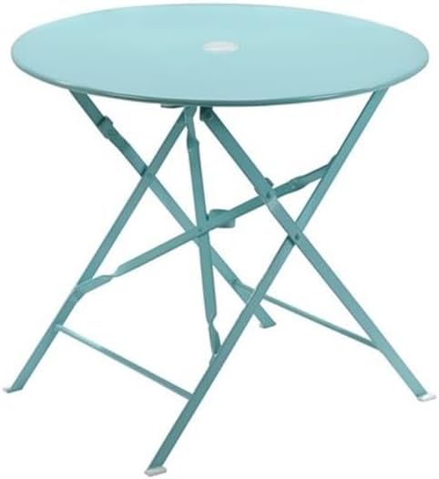 Transform your outdoor living area into a haven of relaxation and style with our teal 30-inch round folding metal bistro table set that includes 2 chairs. Crafted to combine aesthetics and functionality, this bistro table is the ultimate addition to your outdoor collection, offering versatile outdoor dining and leisure possibilities.Features:- Set includes 1 table, 2 chairs- Material: Metal- Finish: Teal- Durable construction- Versatile outdoor companion- Folding- Powder coated metal- Unique teal finish- Space-saving design- Built-in 2" umbrella holeSpecifications:- Table Dimensions: 27"H x 30"W x 30"D- Chair Dimensions: 32"H x 16"W x 19.5"D- Table Weight: 28.5 lbs- Chair Weight: 14 lbs/each- Chair Weight Capacity: 250 lbs- Assembly Required: No