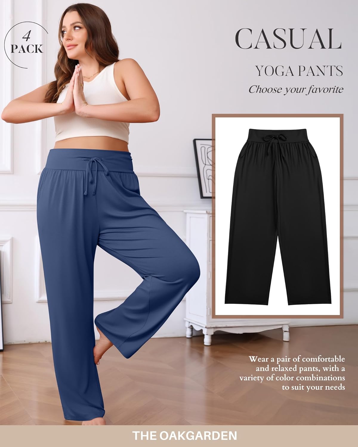 Features: The women's wide leg yoga pants are practical and stylish. Please refer to the detailed size chart to choose the size that fits you for a comfortable and flattering fit. To keep these loose sweatpants for women in their color and shape, it is advised to handwash cold, wash separately, do not bleach. This maintains the clothing's texture, fit, and color vibrancy for longer. Specifications: Material: 60% Polyester, 35% Cotton, 5% Spandex Package includes: 4 x Women's plus size sweatpants Notes: Manual measurement, please allow slight errors on size. The color may exist a slight difference due to different screen displays
