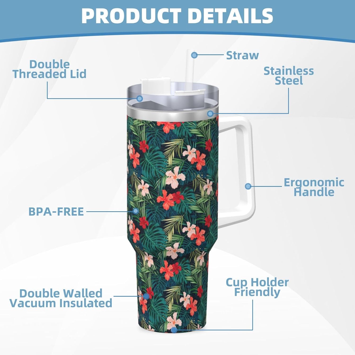 This summer hawaiian Print Ice Bully Cup features a double layer stainless steel design that can be used for a long time without rusting. The lid has good sealing to prevent water from overflowing, and it is easy to unscrew for filling and cleaning. It can keep water, coffee, or drinks warm or cool for hours and is suitable for travel, camping, and driving.