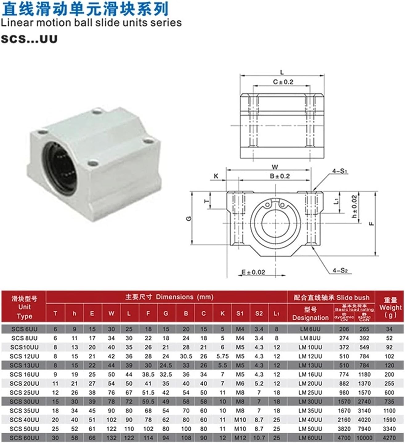 4pcs Linear Motion Ball Bearing Slide Block Bushing SC8UU SCS8UU SC10UU SCS12UU SCS16UU SC20UU Linear Shaft CNC 3D Printer Parts