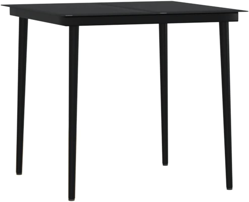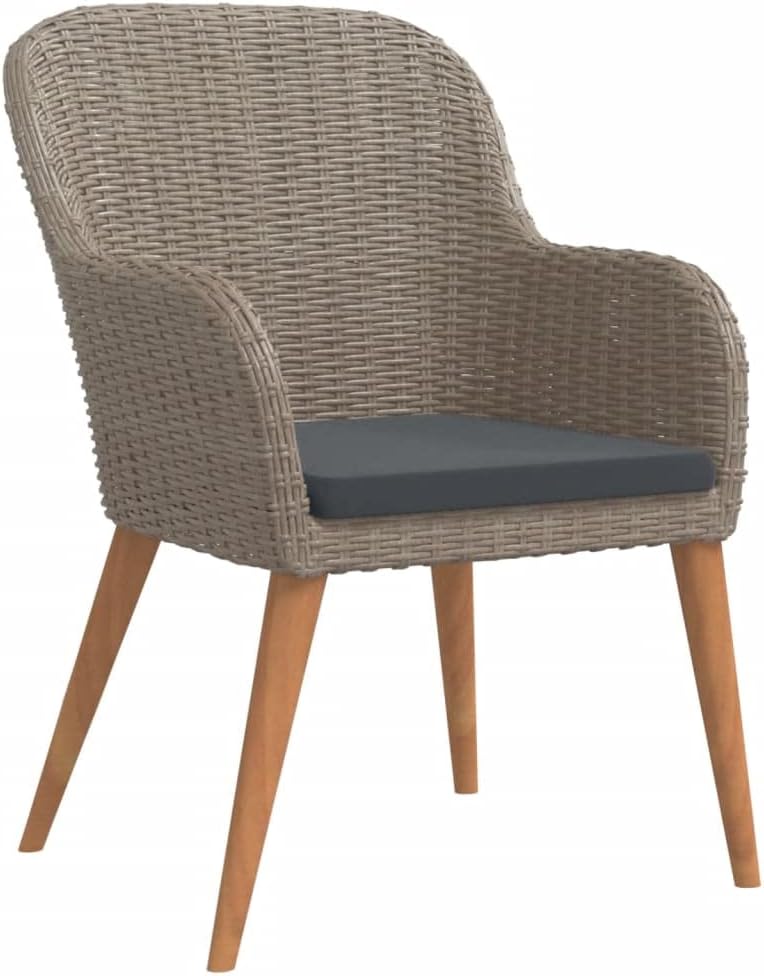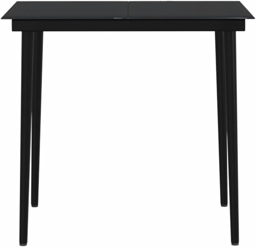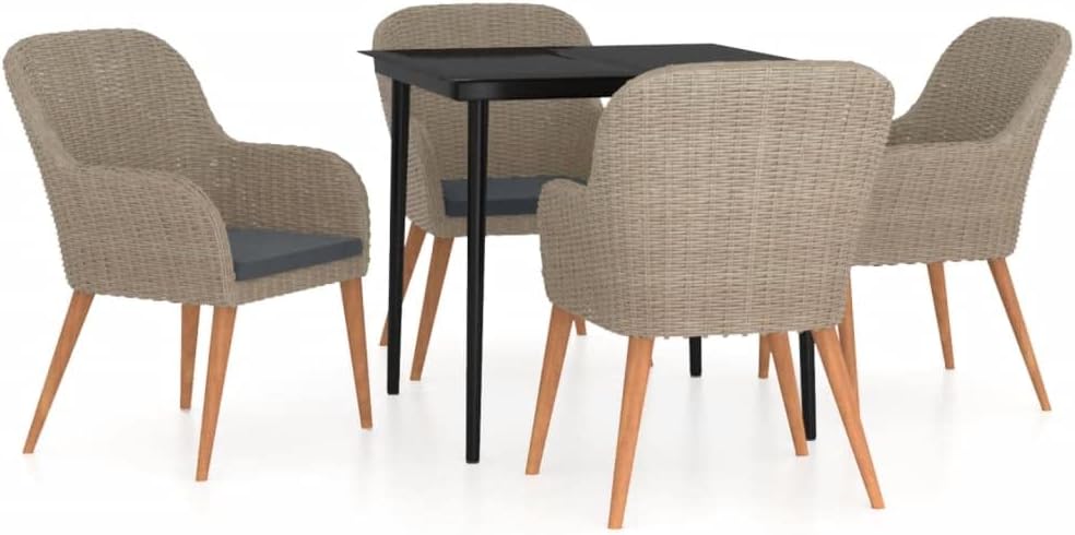 This stylish garden dining set is meant to be the focal point of your garden or patio! It is a great choice for al fresco dining or relaxing in the outdoor space!The powder-coated steel frames make the table and chairs sturdy and stable for daily outdoor use. Thanks to the water-resistant PE rattan, the chairs are easy to clean and hard-wearing. The ergonomically-designed shape and thickly-padded, removable cushions with foam filling provide the ultimate seating comfort. The low-maintenance polyester cushion covers can be easily removed and washed. Additionally, the smooth glass tabletop is easy to clean with a damp cloth and perfect for placing meals, drinks and other decorative items.Note: In order to extend the life of your outdoor furniture, we recommend you to clean it regularly and do not leave it outdoors without protection unnecessarily.Clean: Use a mild soap solution.Storing: If possible, store in a cool, dry place indoors. If the product is stored outdoors, protect it with a waterproof cover. Wipe and dry the excess water or snow from flat surfaces after a rain or snowfall. Allow sufficient air circulation to avoid moisture-related damage.Color: Brown and blackCushion color: Dark grayMaterial: Poly rattan, powder-coated steel, solid acacia wood with an oiled finish, glassCushion cover material: 100% polyesterTable dimensions: 31.5" x 31.5" x 29.1" (L x W x H)Chair dimensions: 22" x 23.6" x 32.1" (W x D x H)Seat width: 16.1"Seat depth: 17.7"Seat height from the ground: 16.1"Armrest height from the ground: 24"Cushion thickness: 1.2"Assembly required: YesDelivery contains:1 x Table4 x Chair4 x Seat cushion