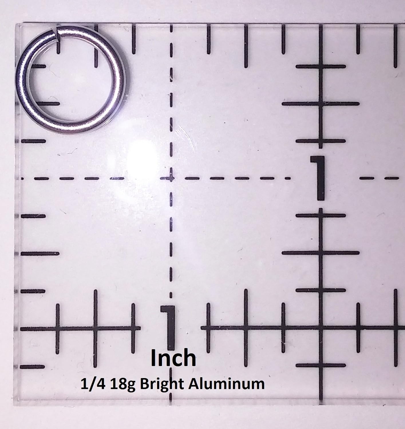 5000 High Quality 1/4" ID 18 gauge SAW CUT Aluminum Jump Rings, clean saw cut for no burrs! 1/4 is the Inside Diameter of the ring, 18 gauge or .048" aluminum is the width of the wire used! These are saw cut rings for a perfect circle when closed making the seam virtually invisible! See our close up picture of a saw cut ring! (Close-up may not be the size of the rings in the auction and is only for demonstrating the cut quality of an average ring) Our aluminum jump rings are made from a high purity aluminum that is resistant to oxidization! They are easy to work with as they bend easier then steel but hold up to abuse! Small business Made in the USA!