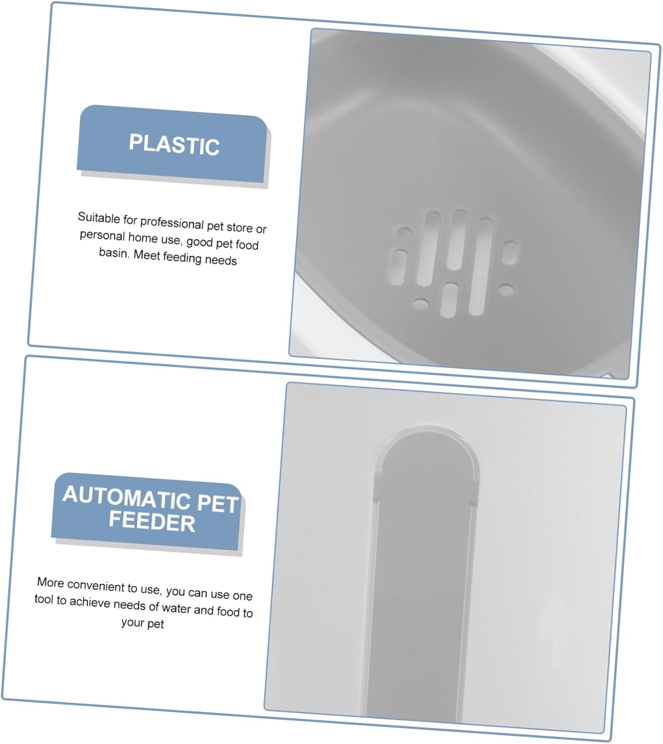 Package List 1 x pet feeder Features -Size:27.00X27.00X24.50cm/10.61X10.61X9.63in Detachable Dog Bowl -Material:Plastic Food Feeder -Color:As shown Pet Water Dispenser - Suitable for professional pet store or personal home use, pet food basin. Meet feeding needs. Automatic Pet Food Water Feeder - Can well meet the dual food and water needs of pets feeding, for families and pet stores. Cat Dish - More convenient to use, you can use one tool to achieve needs of water and food to your pet -skid Dog Bowl. - Crafted with plastic materials, safe and sturdy. Easy to disassemble and clean, useful and user-friendly. Pet Food Feeder - Our Cat Food Water Dispenser is made of plastic material, providing healthy water for your pet and protecting your pet's health Dog Cage Food Bowl.Goods DescriptionDrinking Bowl For Dogs This pet food feeder can help feed water automatically, and you can put pet food on the beside bowls.Cage Cat Feeder It is easy for you to clean this tool, which could bring your pet a cleaning eating environment.Cat Food And Water Bowl Designed to help you enjoy a happier and healthier life with your pet