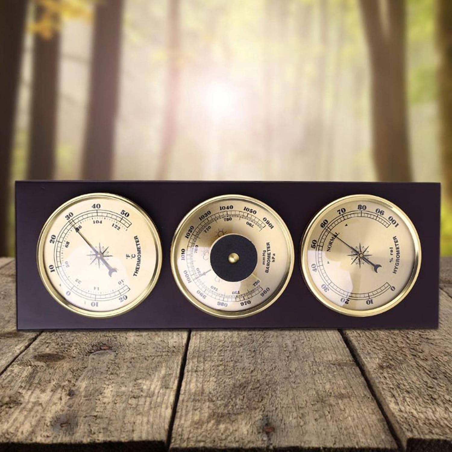 Specifications:Name: Three-in-one weather stationMaterial: metal + wooden frameAmbient Temperature:-4 to 120℉ / -20 to 50℃Measuring Range:960-1060Precision: 960-990hPa +/-10, 990-1030 +/-5Size: 31cm * 11cm (12inches * 4.3inches)Package included:3Pcs/Set Barometer Thermometer Hygrometer Weather Station with Wooden Framedescribe:The barometer is made of high-quality wooden frame and metal materials, making it durable.Dial-type weather station, the weather indicator is clear at a glance, and the weather trend is clear at a glance.Simple and elegant design makes you more comfortable to use.Wall-mounted barometers are lightweight, easy to use and install. Just hang or place on surface. You can install your weather station anywhere in your home or outside, in your home, garden or even in your RV.