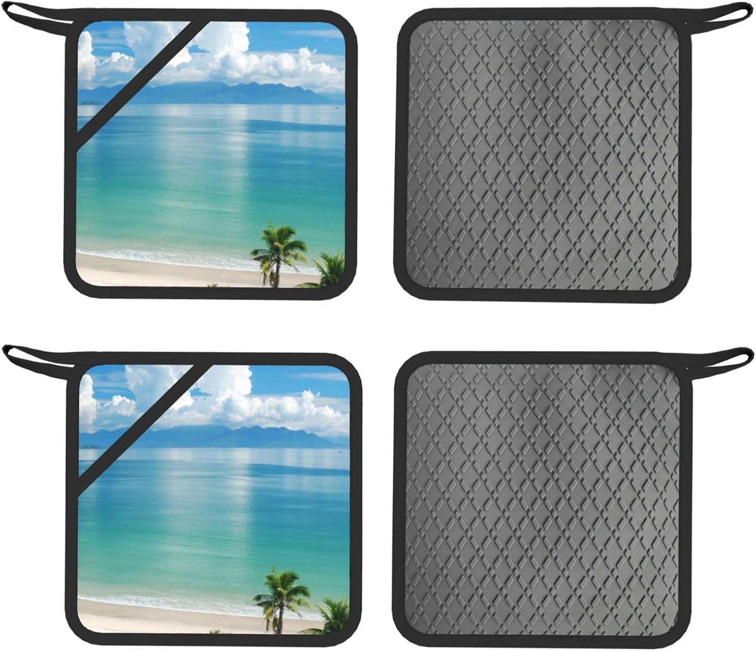 Upgrade your kitchen essentials with this oven mitts and pot holders set, designed for safe and comfortable handling of hot cookware. The set includes 2 heat-resistant oven mitts and 2 pot holders with pockets, making it a practical choice for daily cooking, baking, grilling, and microwave use.Crafted from high-quality polyester with thick insulated padding, these kitchen gloves deliver reliable heat protection up to 260°C. The soft quilted lining ensures comfort and flexibility, while the silicone palm design enhances grip and control when handling hot pots, pans, and trays.The non-slip silicone surface provides added stability, giving you confidence when moving hot cookware. Waterproof inner and outer layers make cleaning simple—just wipe clean or hand wash and air dry for easy care.Each piece features a convenient hanging loop for organized storage and quick access in your kitchen. Stylish and functional, this oven mitts set also makes a thoughtful gift for family and friends on holidays, housewarmings, and special occasions.