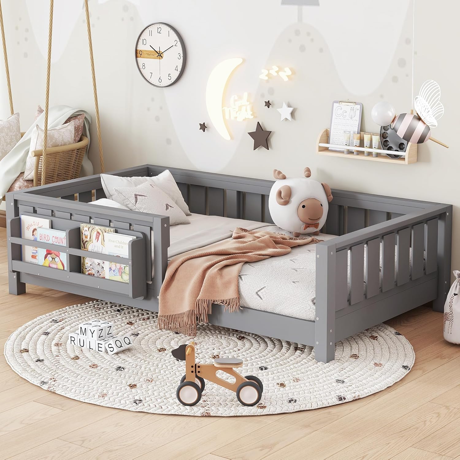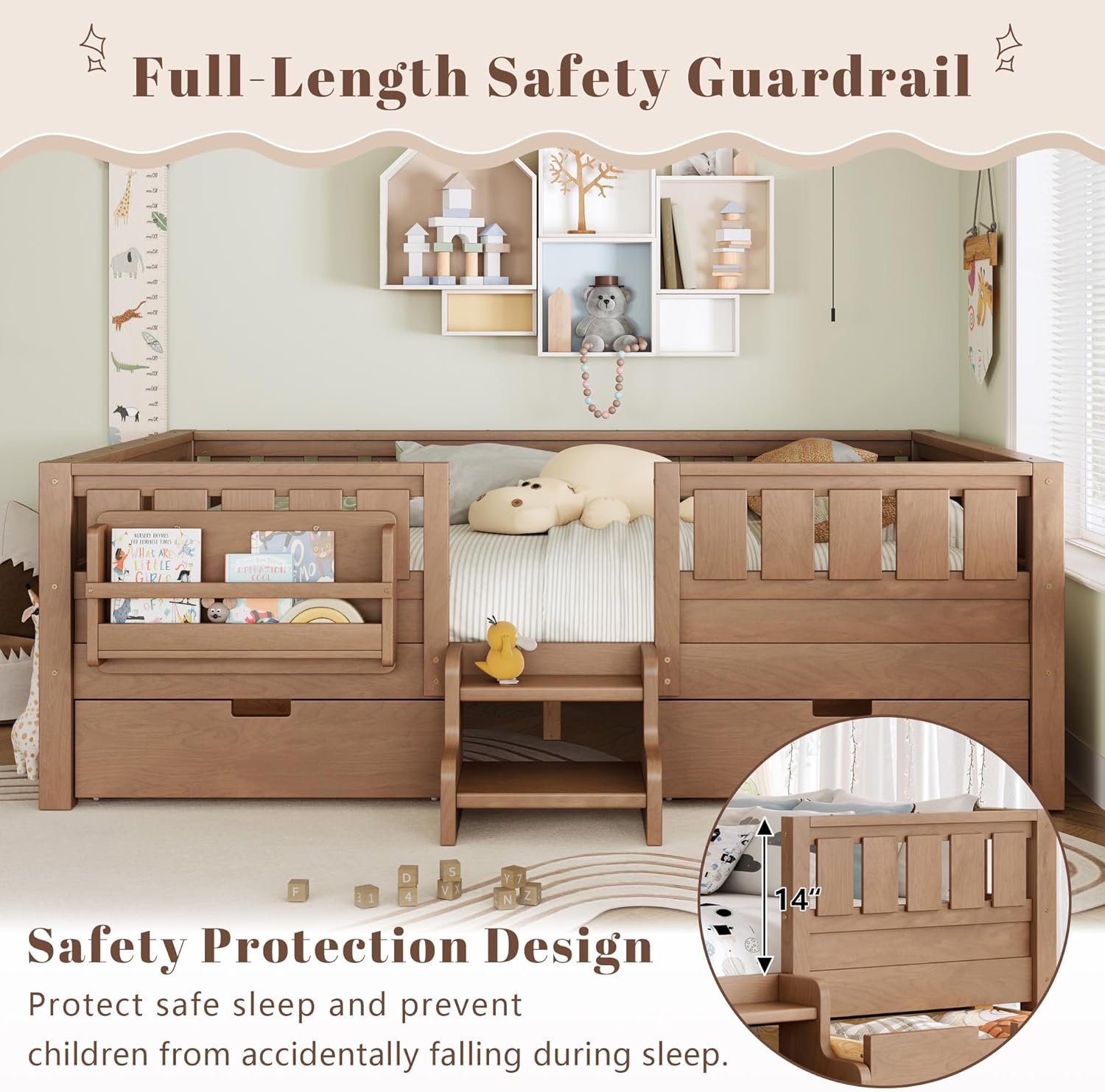 | Form Factor | Floor Bed with Bookcase and Drawers, Low-Profile, Rectangular |