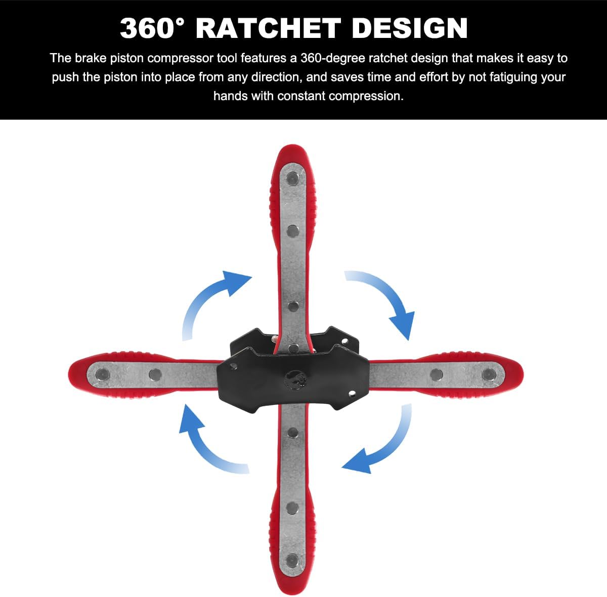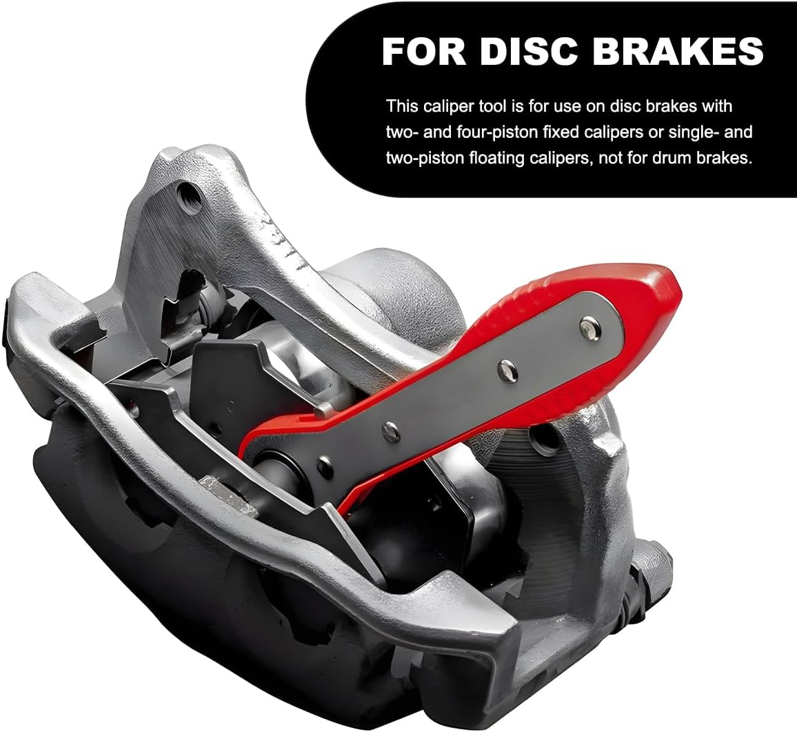 Specification:Material: Carbon SteelQuantity: 7 PCSColor: Red/ BlueWeight: 5.7 lbLarge Plate Size: 7.0×2.4 inchesSmall Plate Size: 4.6×2.2 inchesHandle Length: 8.1 inchesPackage Includes: 1 360° Ratchet Brake Caliper Tool, 2 Large Steel Plates, 4 Caliper HooksFeature: Durable, Practical, ConvenientApplicability: Disc BarkeWhy do you need this brake caliper compression tool?-Our brake caliper handle is rubber-coated for a nonslip and comfortable grip.-This caliper piston compression tool is made of high-quality carbon steel, which is strong and durable.-The brake caliper tool features a 360-degree ratchet design that allows it to be pushed in any direction without causing arm fatigue due to limited direction.