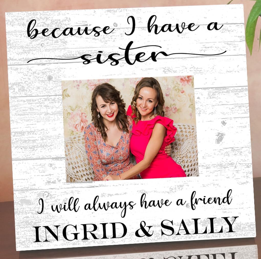 This personalized sister photo frame alternative makes the perfect unique, custom gift idea for a special sister! Upload your photo and we will print your picture directly onto the solid wood. This Broad Bay personalized Because I Have A Sister, I Will Always Have A Friend frame alternative is well-made from solid wood and features a popular modern farmhouse style design that will complement any decor! Made to display on a shelf, desk, mantel or wall, the Broad Bay personalized sister gift picture frame alternative is the perfect wooden sister themed frame for your special sisters photo. Overall Size 10.5in x 10.5in