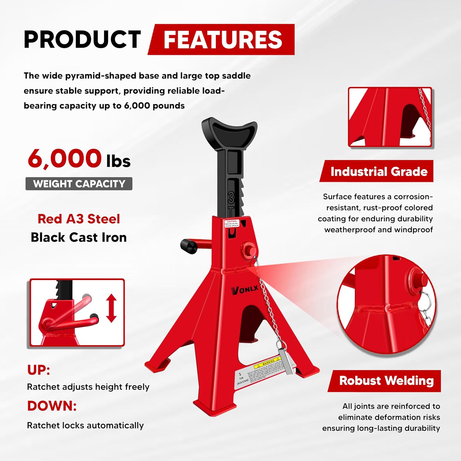 | Included Components | 1 x Color Box, 2 x 3 Ton Car Jack Stands |