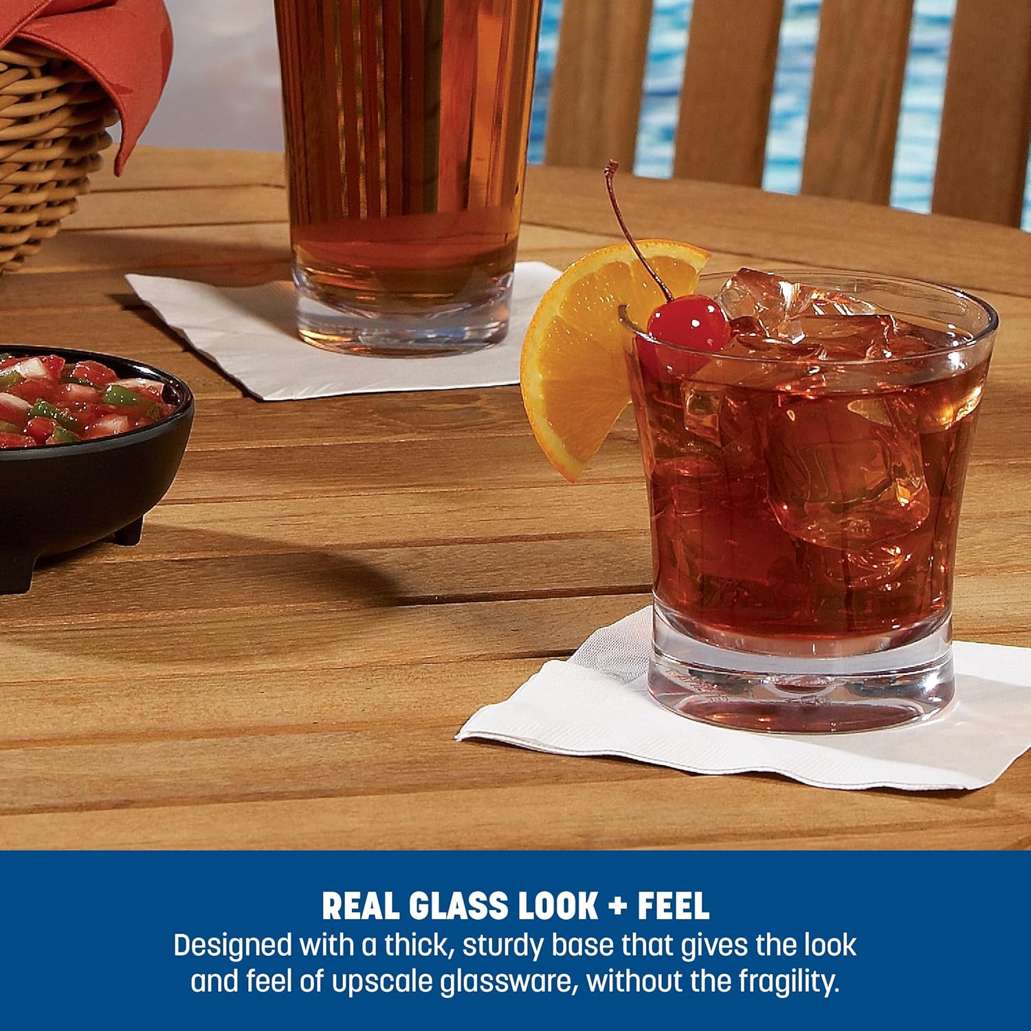 Elevate your beverage service with the Carlisle FoodService Products Alibi Double Old Fashioned Glass - a versatile and elegant solution designed to enhance your restaurant, kitchen, or bar. In this convenient pack of 24, you'll discover a high-quality, 12-ounce clear plastic double old fashioned glass that's perfect for elevating your drink presentations. The Alibi Double Old Fashioned Glass is the ultimate choice for serving refreshing drinks in outdoor and poolside settings. It's designed to create an unforgettable experience for your patrons, making it a must-have for your restaurant, kitchen, or bar. Crafted from resilient SAN plastic, these 12-ounce double old fashioned glasses are not only lightweight but also incredibly durable. They are built to withstand the demands of high-traffic environments, withstanding chipping, shattering, and breaking. Regardless of how busy your establishment gets, these glasses remain reliable and long-lasting. The Alibi Double Old Fashioned Glass goes beyond functionality; it makes a statement. Its thick base emulates the classic appearance of traditional glassware, adding an elegant touch to your beverage service. Every drink served exudes sophistication and style. These double old fashioned glasses feature a refined design that perfectly complements the ambiance of your establishment. Whether you're serving classic cocktails, aged whiskey, or other delightful concoctions, the presentation is elevated, leaving an indelible impression on your discerning patrons. Constructed from SAN plastic, these glasses are not only highly durable but also easy to clean. They are durable agaisnt staining, breaking, and chipping, ensuring they maintain their pristine condition. For extended longevity, they can be conveniently hand-washed, offering a practical and long-lasting solution for your beverage service.