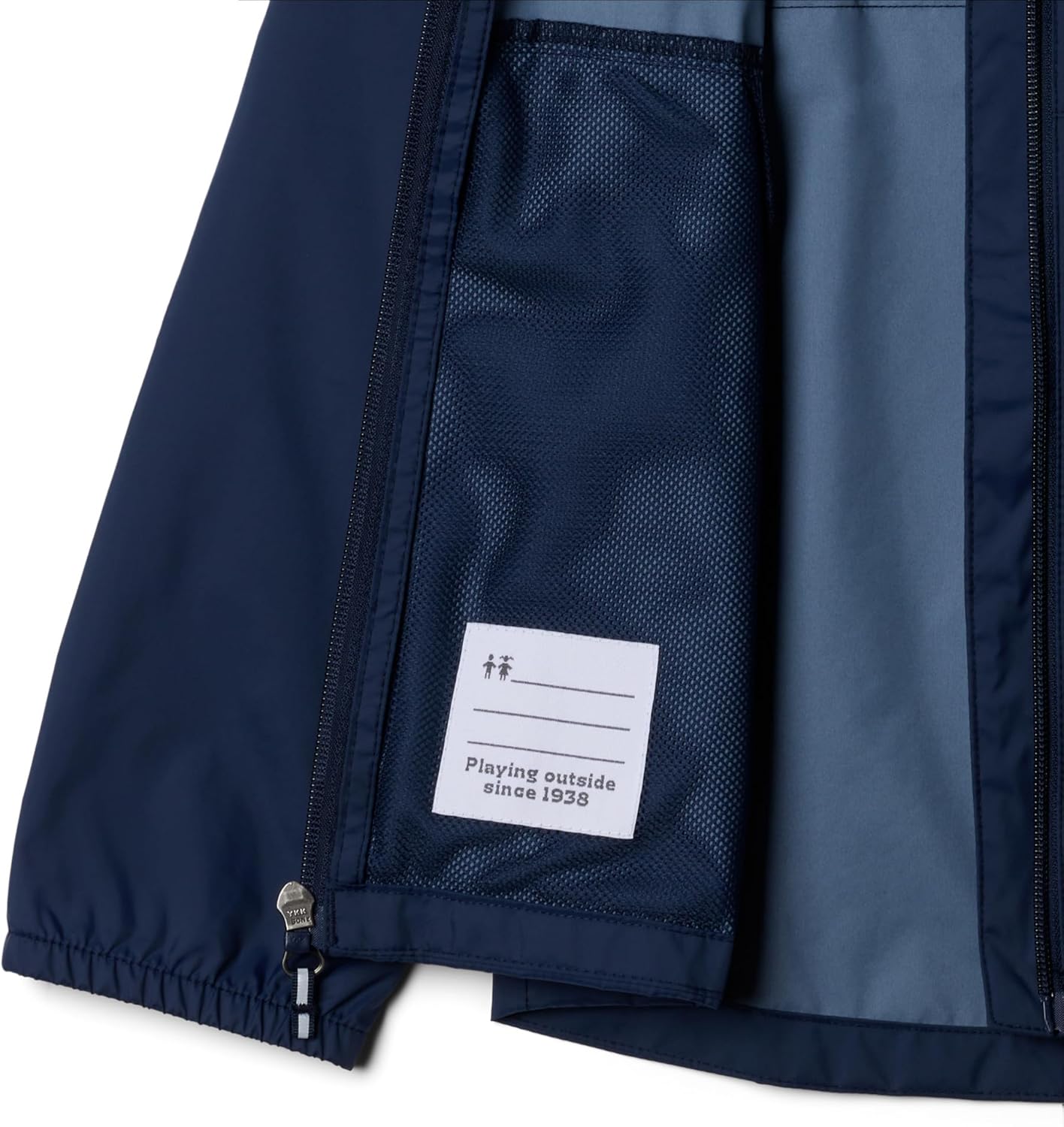 No rain checks here—this waterproof jacket for kids is ready go. Its nylon shell is super light, so they won't feel weighed down, while elastic cuffs seal the elements out. This versatile rain jacket is so lightweight it’s just as comfortable acting as an everyday windbreaker. Features elastic cuffs and a drop tail to keep the wet and cold out, with full zip front, two hand pockets, and reflective accents. Offered in several stylish colors, it comes in multiple sizes for youth. Regular Fit. To ensure the size you choose is right, utilize our sizing chart and the following measurement instructions: For the sleeves, start at the center back of your neck and measure across the shoulder and down to the sleeve. If you come up with a partial number, round up to the next even number. For the chest, measure at the fullest part of the chest, under the armpits and over the shoulder blades, keeping the tape measure firm and level.