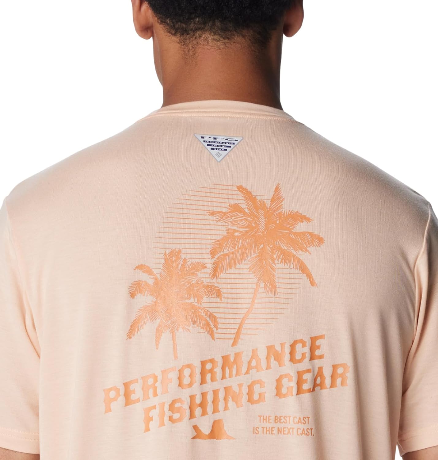 A true summer staple, this PFG tech tee wicks sweat and shades you with sun-stopping UPF 50 protection. Whether you're fishing, kayaking, or just hanging by the water, it has you covered all day. Columbia offers this shirt in multiple colors and sizes. Regular fit.