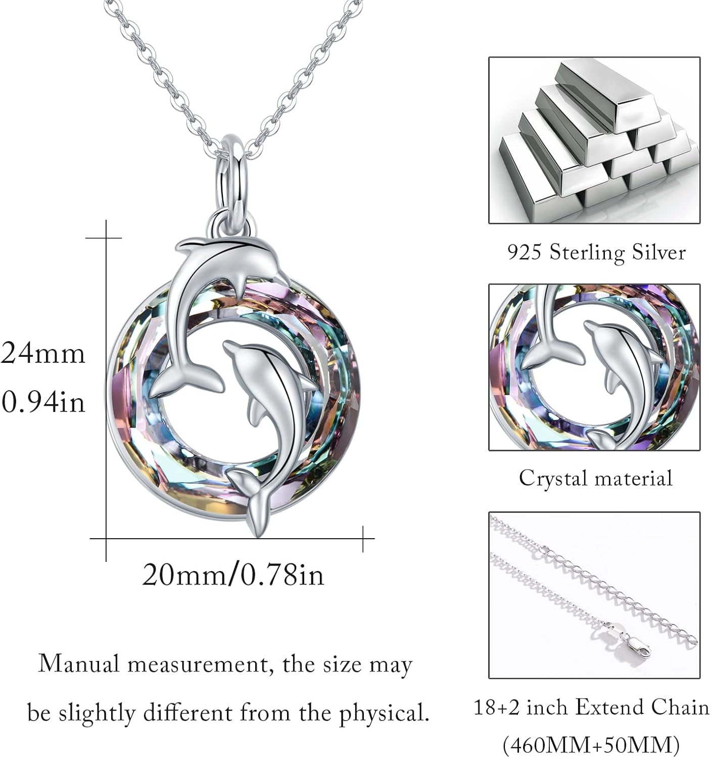 Package information: 1x S925 Dolphin Necklace Infinity Pendant Necklace 1x Silver Cleaning Cloth 1x present Box .★Caring for Sterling Silver Necklace: Rub it with baby wipes: they perform miracles on jewelry. Then rub with a clean dry soft cotton cloth to bring back the shine. Put it inside a soft cloth pocket or fabric swath,avoid it from rubbing against other jewelry. To better maintain your sterling silver Pendant Necklace,please take it off when you swim,take a shower,or other action involved in water. This exquisite women necklace gives you a totally fresh impression.Just be happy to add this necklace to your jewelry collection.