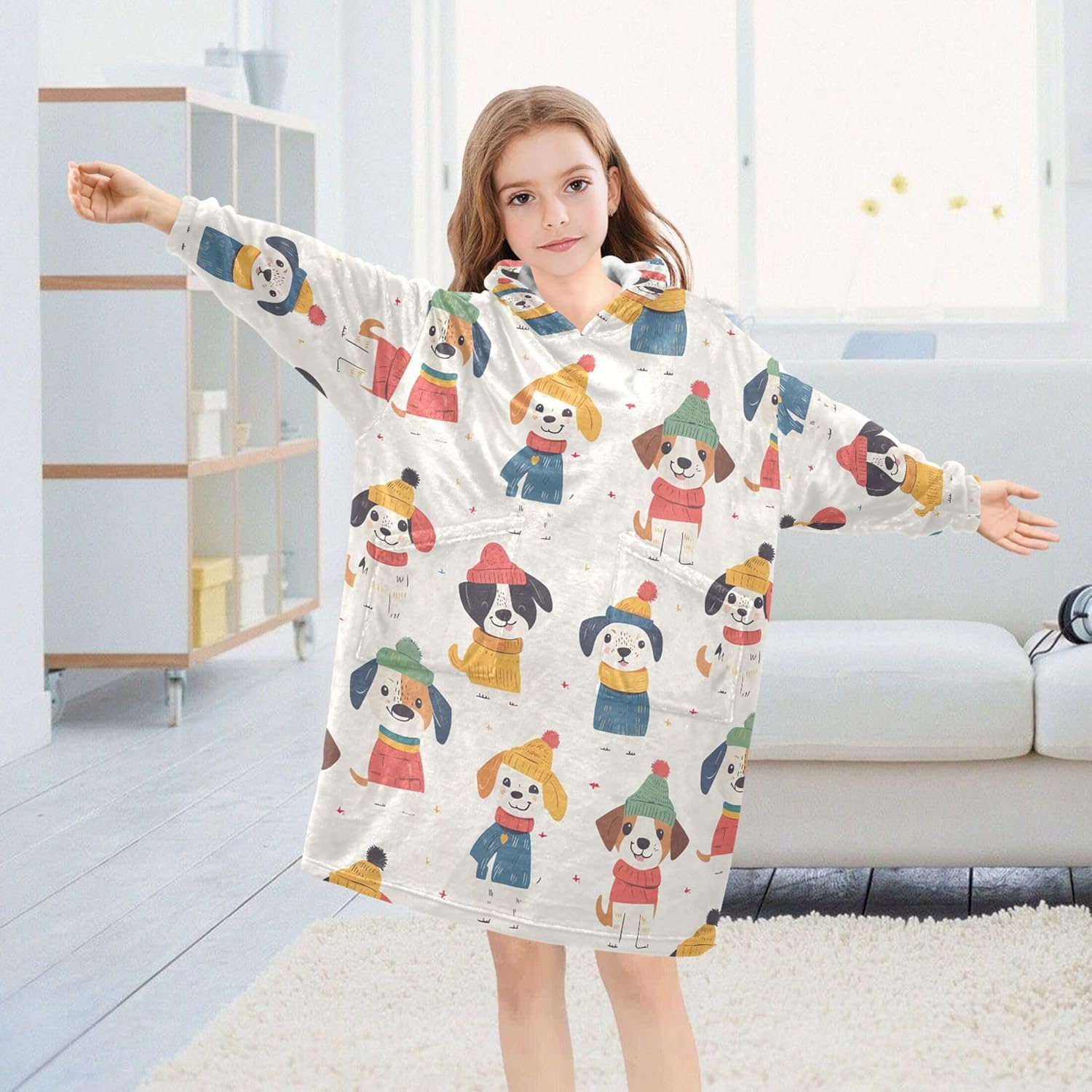 Wearable Blanket Hoodie Kids Flannel Oversized Blanket Sweatshirt with Pocket Hooded Blanket for Boys Girls 3-14 Year Note: Due to the difference between different monitors,the picture may not reflect the actual color of the item,Please allow the slight color difference! We always doing our best to provide the best service and reliable products for every customer,Thank you very much! Have a good day!
