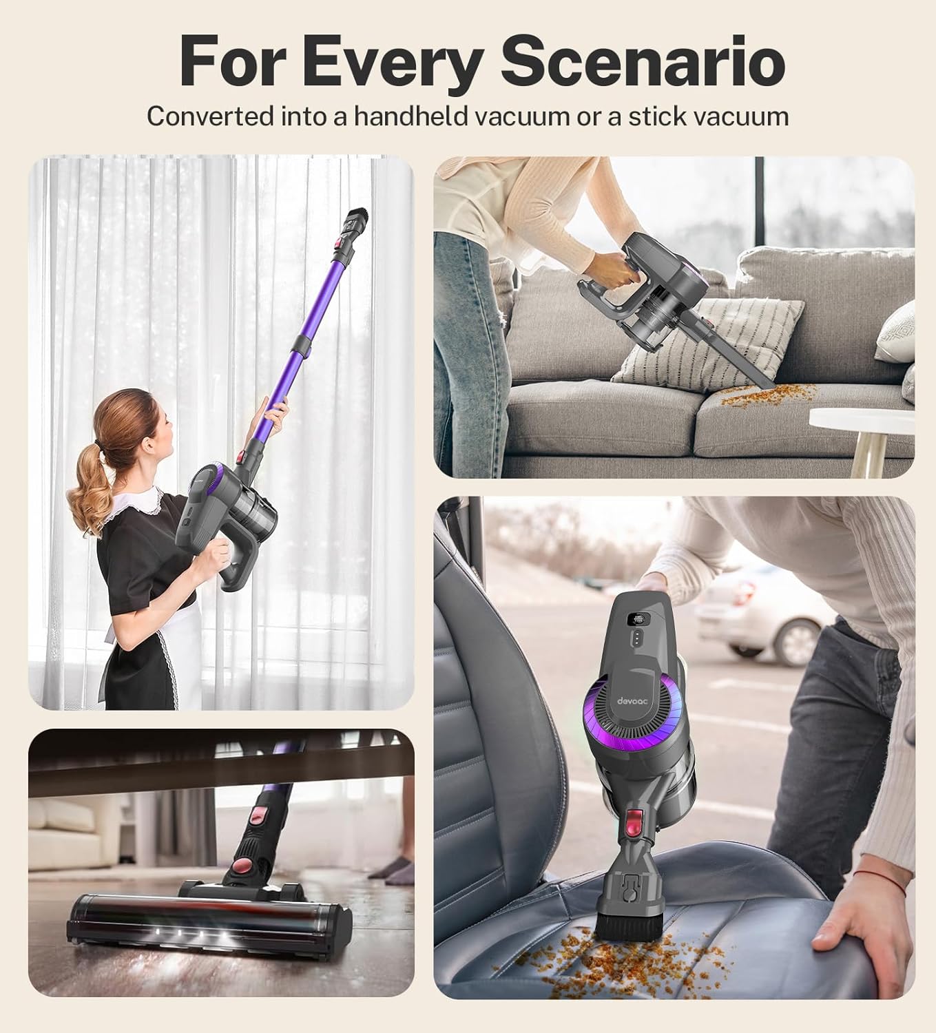 | Other Special Features of the Product | 2200mAh Rechargeable Battery & Up to 40mins Runtime, 3.9lb Ultra-lightweight, 6 IN 1 Versatile Use Vacuum, Powerful Suction & 2 Adjustable Suction Modes |