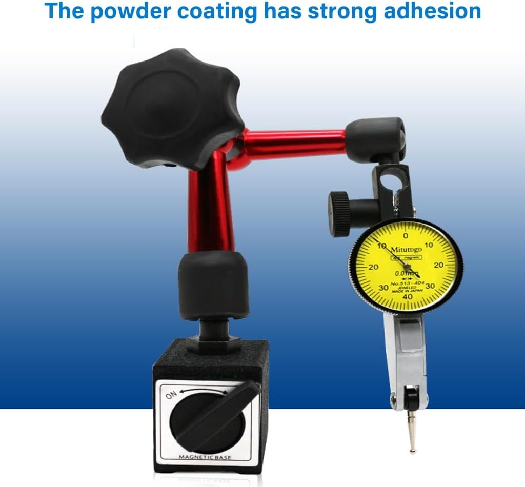 Features: The flexible magnetic base holding stand features a permanent magnet for secure attachment to machine tool, ensuring stability while protecting your measuring device and work table during precise adjustments. With a 360 degree adjustable arm and aluminum construction, this tool offer various positioning and reliabled performances for accurate measurements in narrow or hard to reach areas. Ideal for machinists, engineers, and automotive technicians requiring precise dimensionally analysis in industrial workshops or manufacturing facilities. for maintaining measurement accuracy during metalworking, woodworking, or mechanical repairs where 0.01mm resolution matters in tight space. This complete set includes a dials test indicators and accessories, for quick setups and repeated use across multiple measurement tasks without compromising device integrity. Specifications: Component:Aluminium Dials gauges diameter: 32mm Magnetic seat size: 40x30x36mm Total length: 200mm note: 1.Please allow 1-2cm errors due to manual measurement, make sure that you donot mind befores you order. 2.Due to the differences between different monitors, the picture may not reflect the actual color. Thanks for your understandings. Package Includes: 1 Set Workshop Levers Indicators