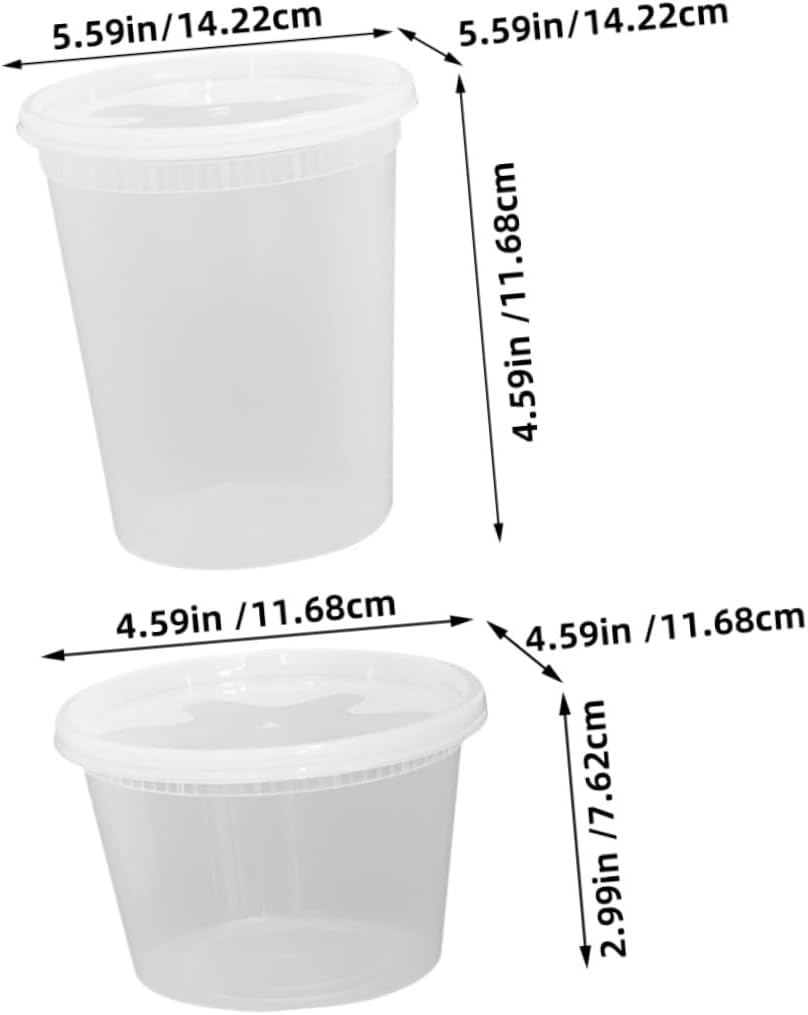 Package List 25 x Disposable Soup Cups (32oz) 25 x Disposable Soup Cups (16oz) Features -Size:14.22X11.68X11.68cm/5.59X4.59X4.59in (32oz) -Size:11.68X11.68X7.62cm/4.59X4.59X2.99in (16oz) -Color:White -Product Info:Temperature-resistant packing bowl -Material:PP - Owning the strong wear and break resistance ability, very practical, with excellent texture soup cups with lids. - The surface of the cups is smooth, no burrs, non-skid, the proper size makes you easy to carry. - The leakproof, waterproof and oil proof cups can be used as porridge cups, dessert cups, ice cream cups and more clear cups with lids. - The takeout cups are suitable for many occasions, such as home, dessert shop, party, buffet and more Takeout Soup Bowls. - A bowl with a lid is perfect for putting in some eggs, hot or cold cereal, hot soups, flour soup cup.Goods InformationTake-out Cups With Lids Our takeout soup container is with modern design, the portable mousse cup is suitable for your favorite dessert like chocolate mousses, cake, ice cream, soup, porridge, etc.takeout containers with lids Besides, the product is stylish and elegant