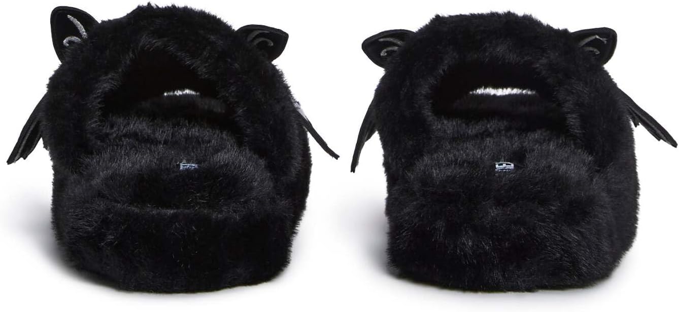 Get cozy with a spooky twist in the Dolls Kill Bat Slippers by Trickz N’ Treatz. These black fuzzy slippers feature cute bat details with wings and red eyes, combining playful Halloween spirit with everyday comfort. Made from ultra-soft plush fabric, they keep your feet warm while adding festive flair to your loungewear or costume look. Perfect for lounging, pairing with themed outfits, or gifting to a Halloween lover, these slippers are as comfy as they are cute.