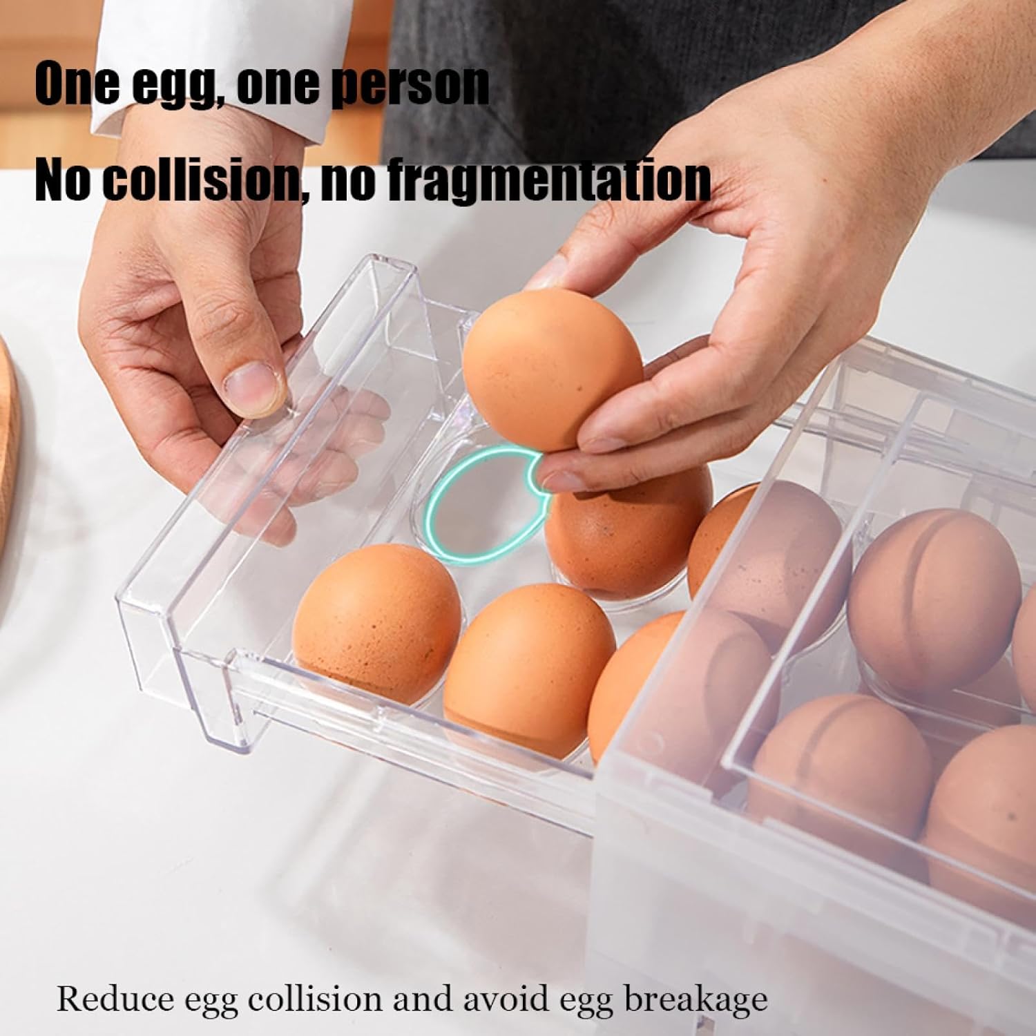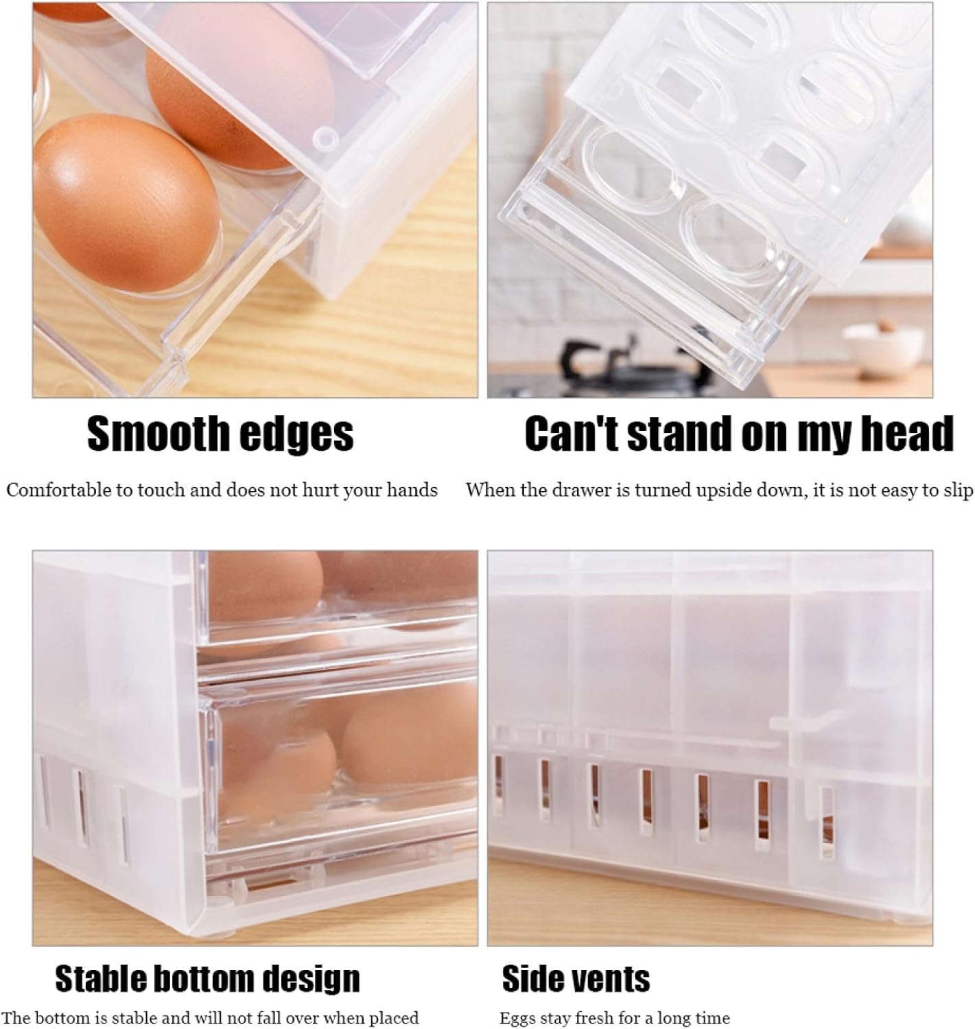 • ⭐【Unique Design】Our egg storage adopts egg slot and groove design, each egg is stored separately, which protects each egg, prevents the egg from being broken by collision, does not collide with the egg, and keeps the egg fresh, and When you take the eggs out of the egg carton, they are easily accessible.