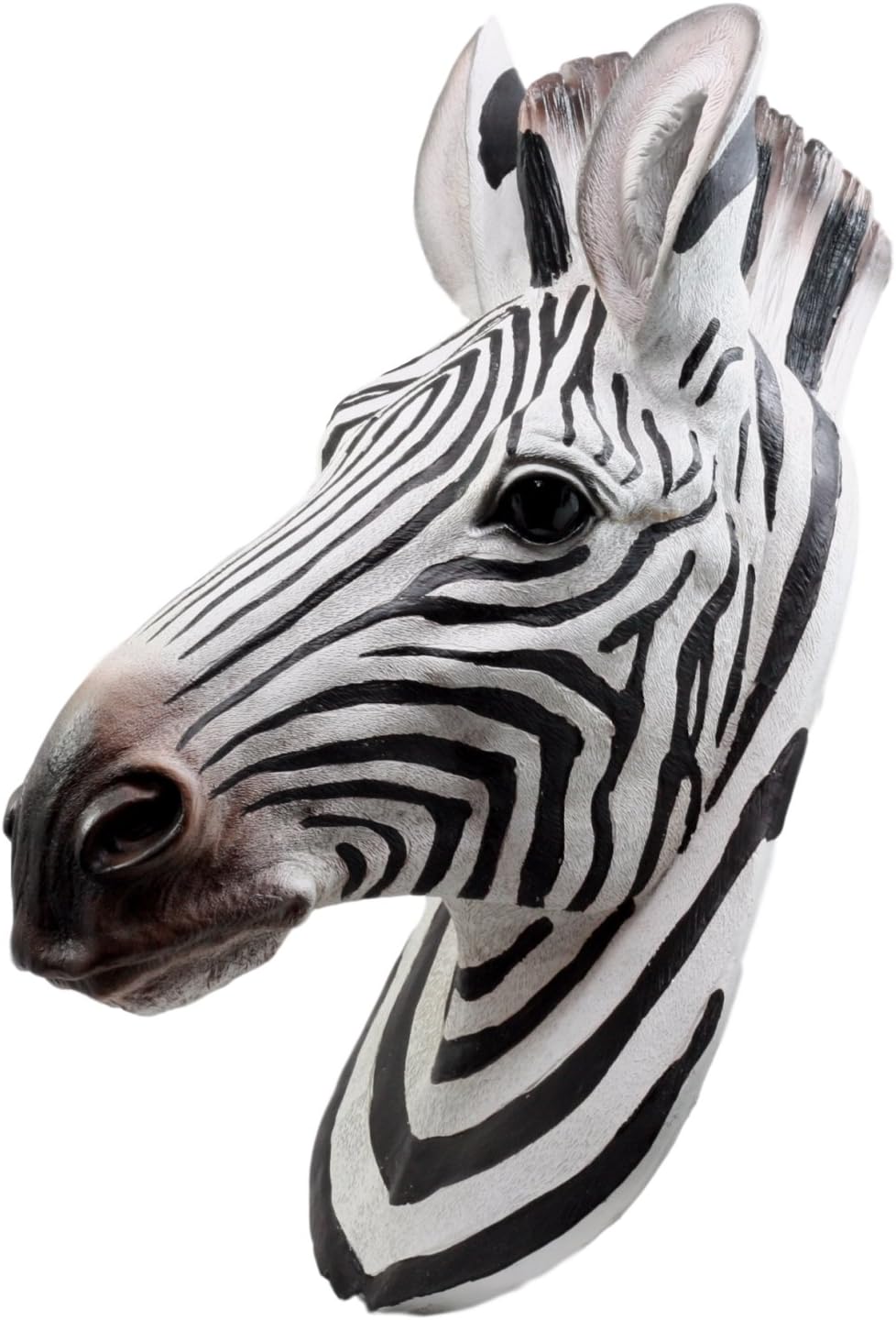 This African Plains Zebra Head Wall Sculpture is 16" tall, 8.5" long and 8" deep approximately. This African Plains Zebra Head Wall Sculpture is made of designer composite resin, hand painted and polished. Color Tone may vary. Looking for an exotic wall decor to grace your room? Look no further with this high quality wall plaque!!! Beyond the plains of Madagascar, in the sunset you will see a herd of zebras with different stripe signatures. This is one of them in taxidermy style, although it is completely sculpted out of resin and not a real zebra. The sculpture boasts of beautiful craftsmanship and painting done by hand to highlight the unique features of the zebra. This Zebra Head hangs on one screw on the wall. It is highly recommended to anchor drywall before hanging him up.