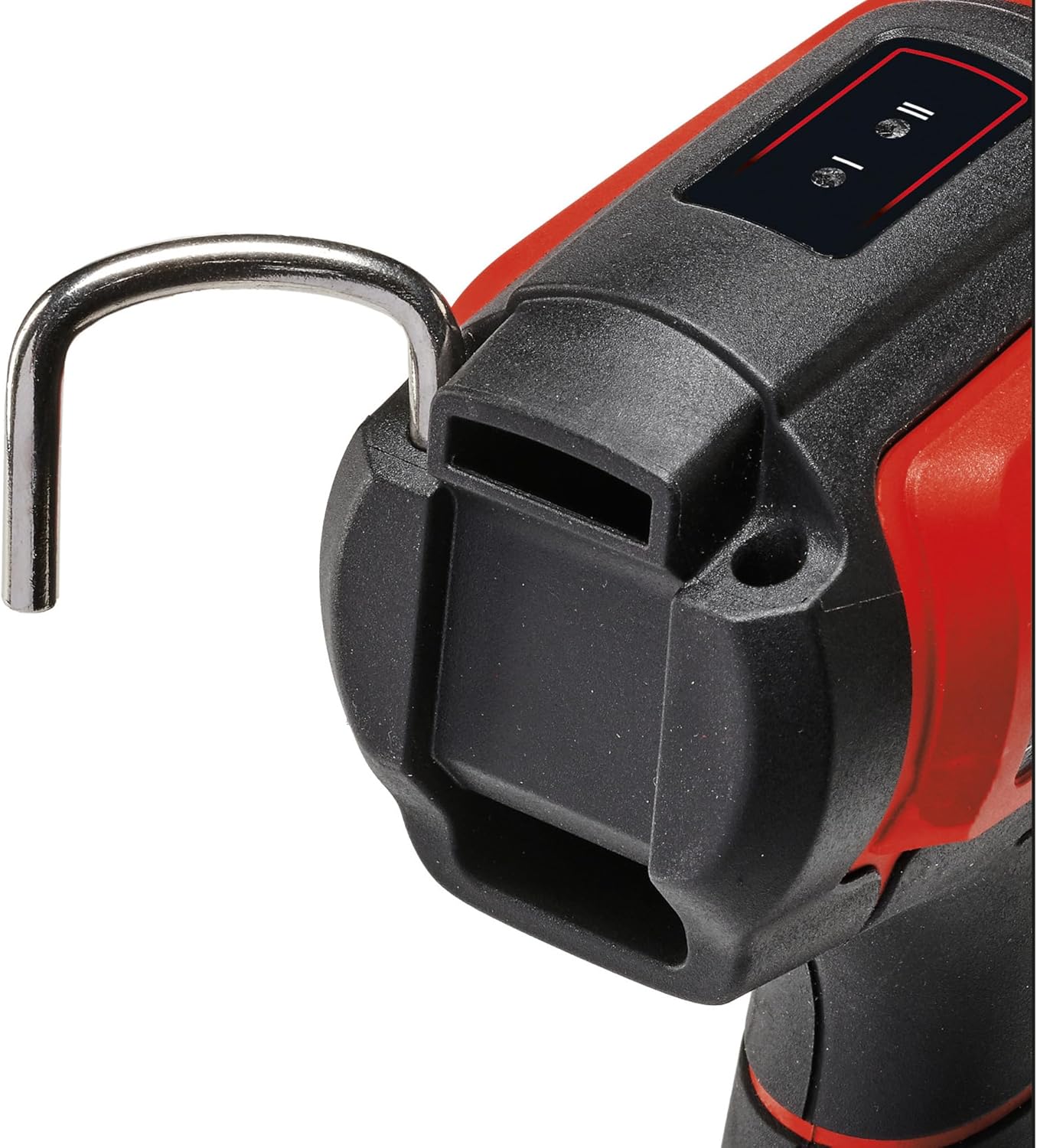 The Einhell TE-HA 18 Li – Solo cordless hot air gun is a flexible member of the high-quality Power X-Change series. The high-performance hot air gun has two temperature settings: For gentle shaping of plastics in model-making, for removing adhesive film or even for old lacquer, adhesive residues and layers of paint. The LED display allows the selected temperature setting to be checked at a glance. The overheating protection ensures that safety is assured during operation. For easy removal of the reducer nozzle, wide jet nozzle and reflector nozzle which are included, there is a mechanical nozzle ejector. There is a flat surface to make it suitable for stationary use and a swing-out metal hook for flexible work and storage. The ergonomic handle with soft grip provides a firm and secure hold. The product is supplied without a battery or charger (available separately).
