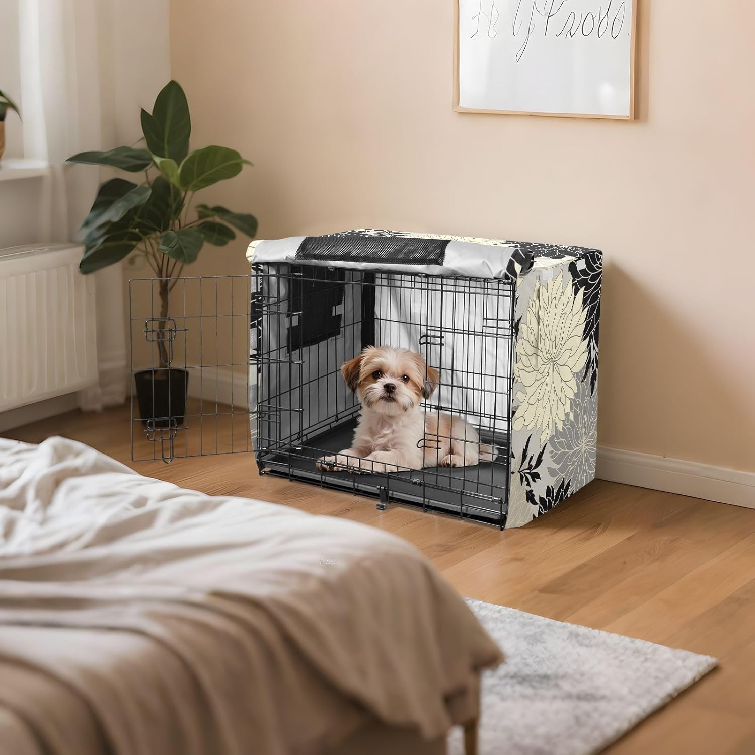 Weather-Resistant Dog Crate Cover is made of 600D silver-coated oxford fabric that provides exceptional protection against wind, rain, and sunlight. This material prevents your pet from scratching the crate and blocks most direct sunlight, ensuring a safe and comfortable space.Simple and Secure Setup features an easy fastening system, making it effortless to install without the need for tools. This breathable dog crate cover fits securely onto your dog crate, ensuring it stays in place and provides protection at all times.Ventilation for Comfort with mesh windows on all sides, our pet kennel cover ensures optimal airflow, keeping your pet cool and comfortable even during long periods inside the crate. The mesh design also provides privacy and security for your pet.Wind-Resistant and Stable with four adjustable tie-down straps at the bottom, this breathable pet cage cover stays securely in place, preventing it from being blown away by the wind or removed unintentionally. This feature ensures that your pet’s crate remains stable and protected.Versatile Use Suitable for both indoor and outdoor settings, this pet cage cover provides the protection your pet needs in various environments, whether at home or on the go. The compact design makes it easy to store and travel with.