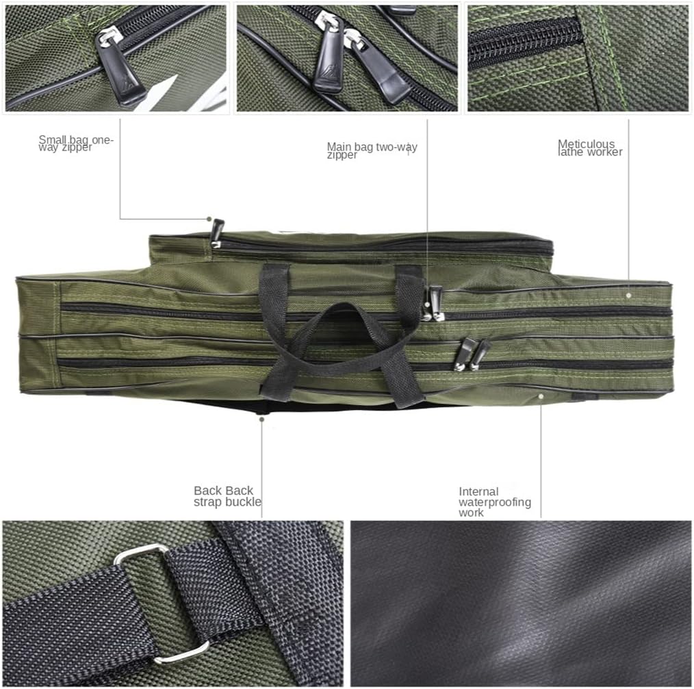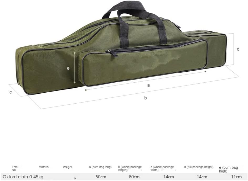 Large opening with bi-metal zipper closure provides easy access to the tackle inside.Adjustable padded shoulder straps free your hands.Lightweight and foldable for easy storage and portability.Reinforced stitched edges for added durability.The fishing bag to protect and store your rod and reel together.Material: Oxford clothColor : GreenDimensions: 80 * 14 * 20 cmPackage Included:Fishing rod storage bag*1 (excluding other demo products)notes:Due to manual measurement, please allow 0-1cm error. Make sure you don't mind before bidding.Due to differences between different monitors, the pictures may not reflect the actual color of the item. Thanks!Made of nylon material, waterproof and wear-resistant,Can protect your fishing rod well.