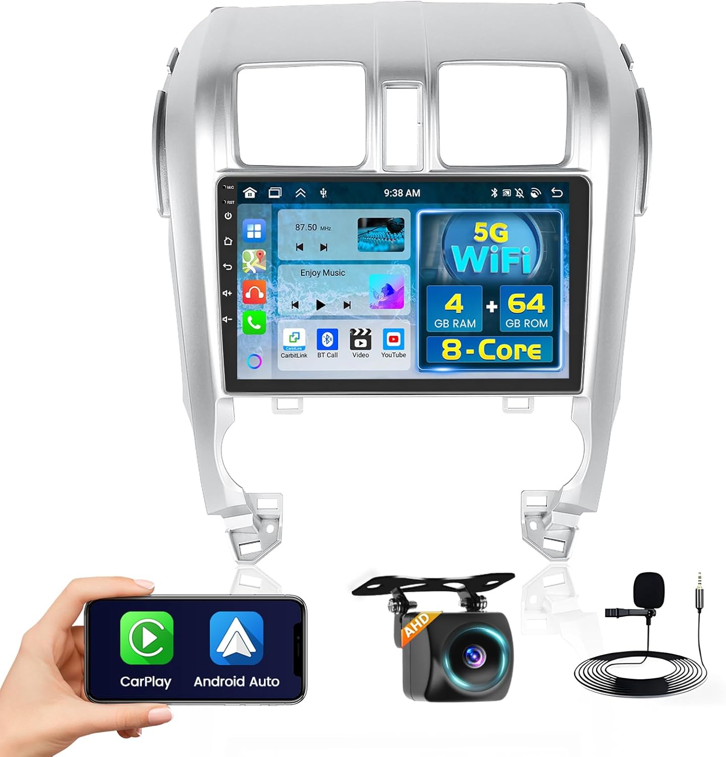 | Additional Features | 18 FM/RDS Radio, 1080P HD Rear Camera, Mic, Android, 2+64G, 9 inch IPS Touch Screen, Dual USB adapter input, Split Screen, Steering Wheel Control,EQ, WiFi, GPS Navigation, Bluetooth, 26UI, Wireless Carplay/Android Auto/Mirror Link |