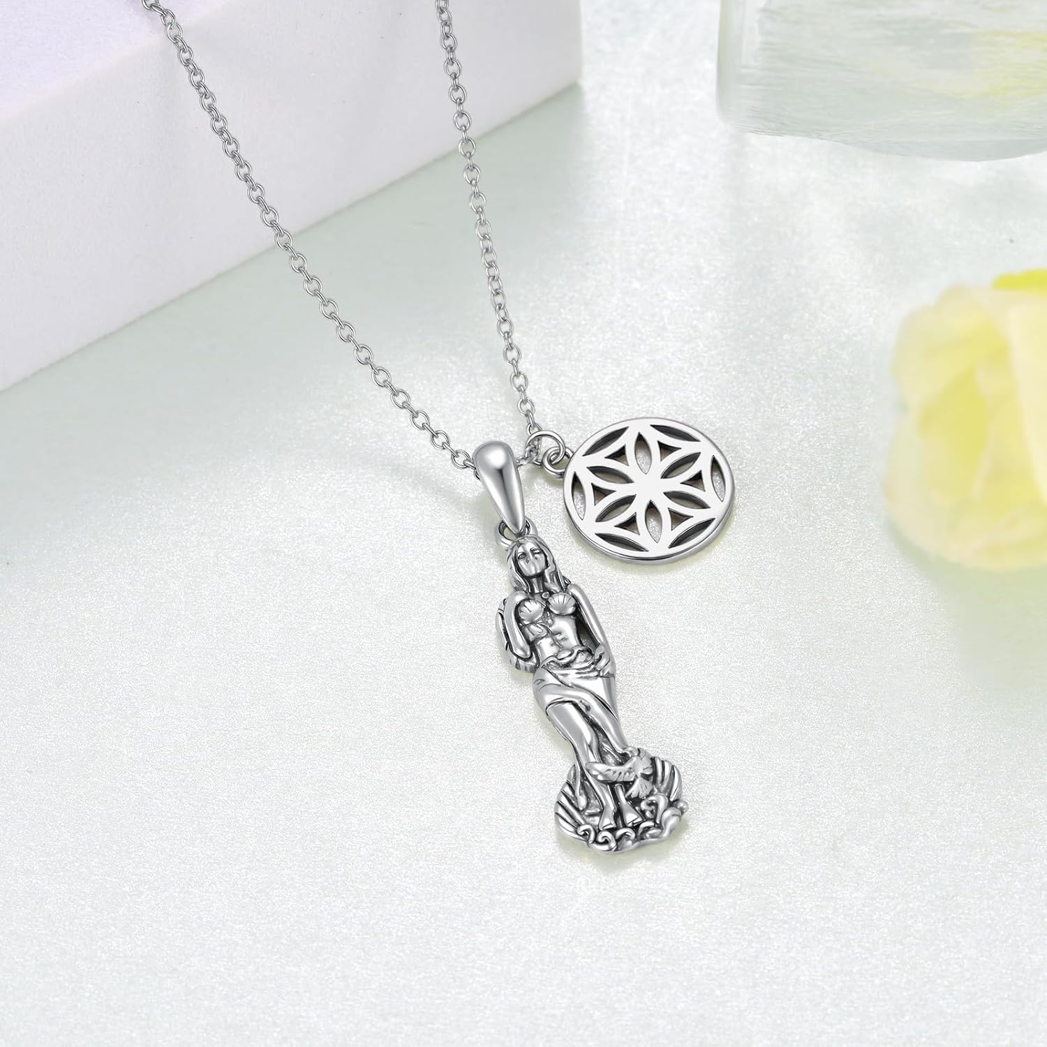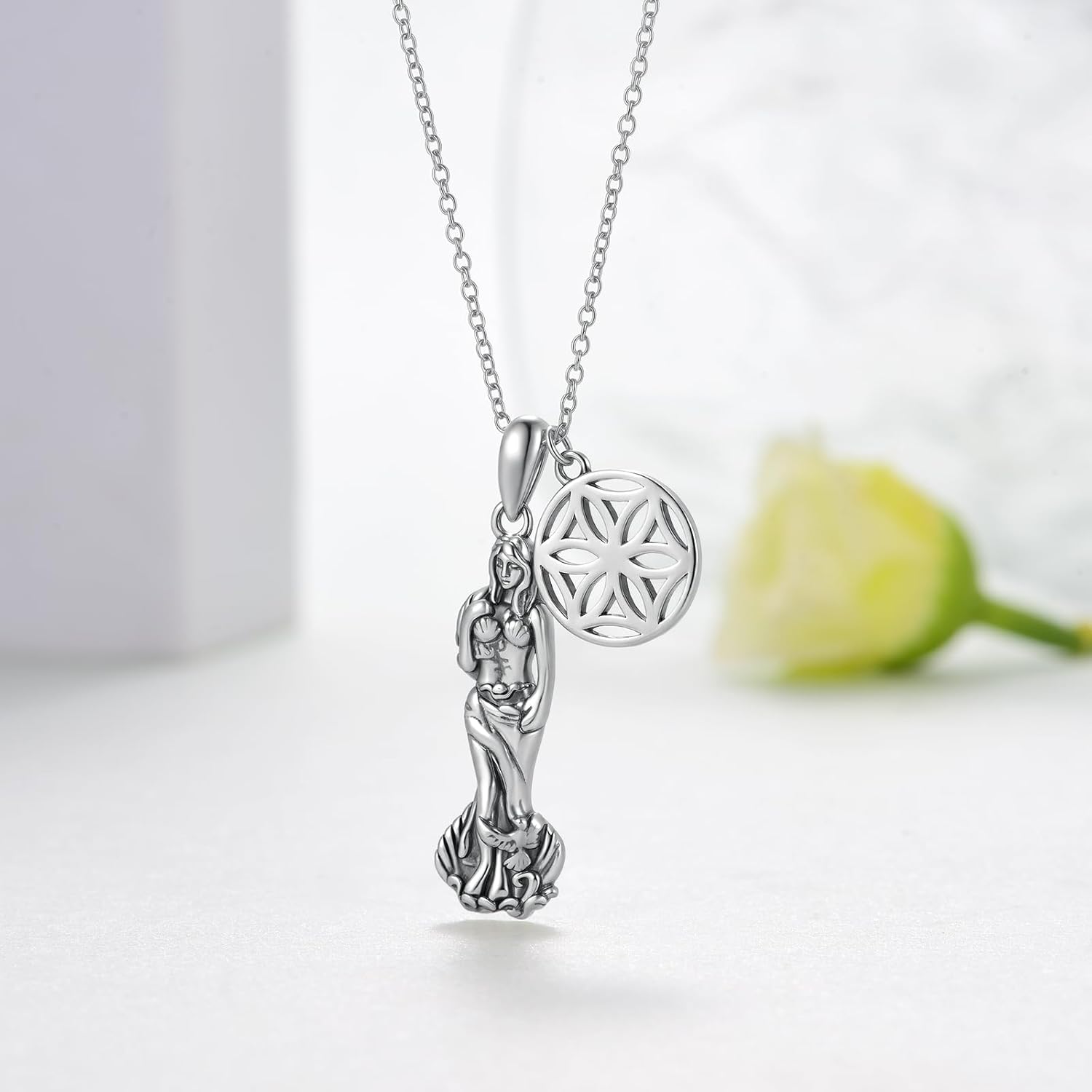 Greek Goddess Aphrodite Pendant Necklace 925 Sterling Silver Flower Of Aphrodite Necklace Greek Mythology Jewelry Gifts for Women on Christmas Valentines’Day Thanksgiving'Day Birthday Mothers'Day