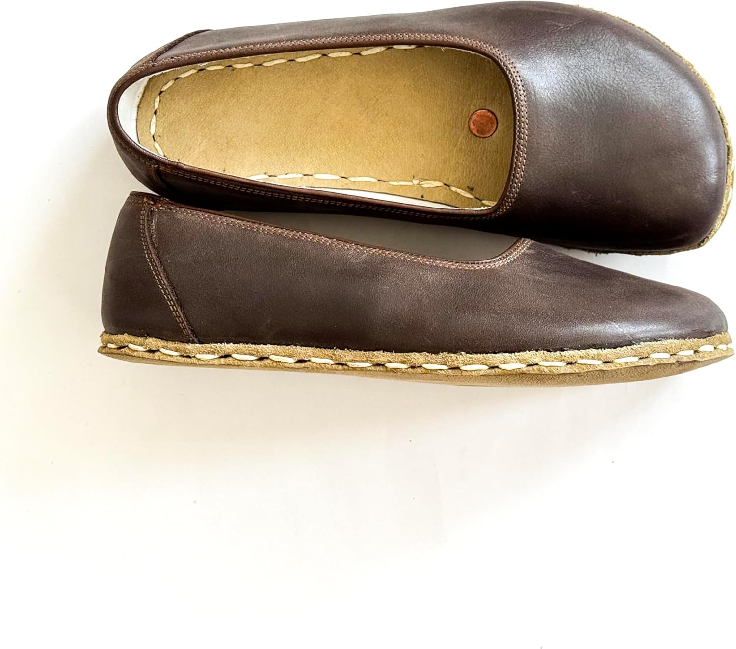 Copper Riveted Leather Grounding Shoes A special design that brings nature and health together… Copper riveted leather grounding shoes are a unique creation that blends traditional craftsmanship with a modern healthy living approach. The sole, made entirely of natural leather, allows your feet to directly connect with the earth. This helps release the static electricity accumulated in artificial environments, letting you once again feel the healing energy of the ground. The copper rivets placed inside the shoe maximize the grounding effect thanks to their strong conductivity. Copper, known for centuries for its durability and electrical conductivity, is a metal that harmonizes with nature. This special detail is not only a stylish design element but also a functional feature that benefits your health. Benefits: Discharges artificial electrical buildup from daily life. Supports natural energy flow and balances the body. Through grounding, it may positively influence sleep quality, stress levels, and overall vitality. Offers durability and uniqueness thanks to meticulous handcrafting. Each pair is skillfully shaped by hand and crafted with natural materials. As a result, you own a product that is both healthy and aesthetic. Ideal for everyday use, they are also a unique companion for nature walks and outdoor activities, strengthening your connection with the earth.