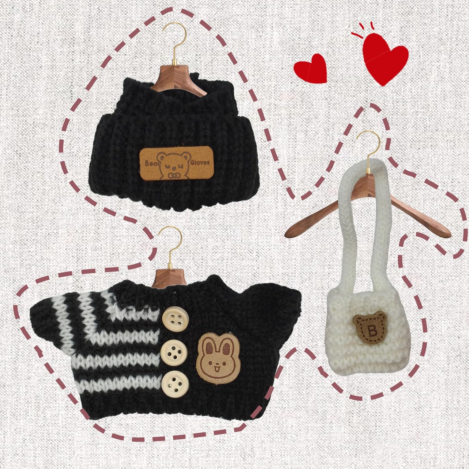 | Color | Button Up Black Sweater + Black Hat +White Bag |