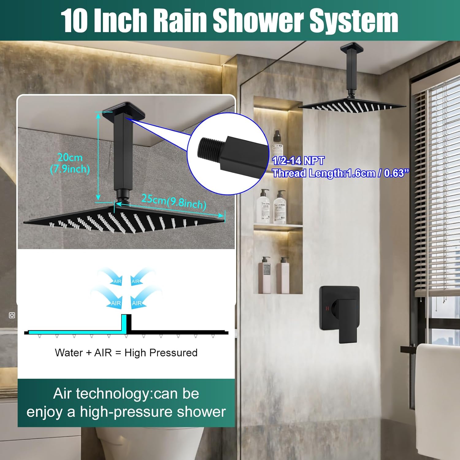 | Included Components | Escutcheon, Handles, Rough-in Valve, Shower Arm, Shower Head |